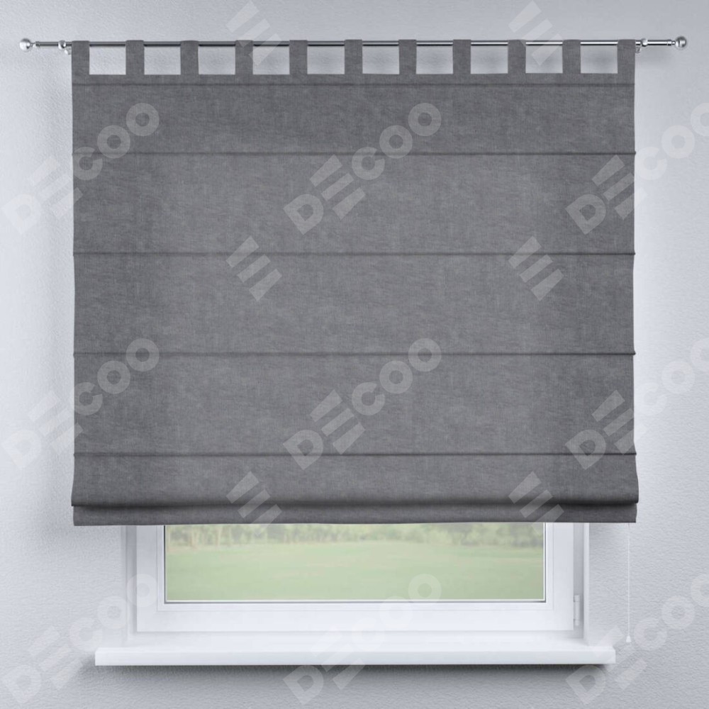 Римская штора производителя «Cortin», используется для проёма, пошита из ткани канвас стальной, артикул ткани v-1082. Данная модель пошита на петлях, комплектуется на выбор круглым карнизом и подходит для монтажа на стену. Римская штора на петлях имеет простую систему регулировки высоты, отличительным преимуществом данной модели является простой способ монтажа. Достаточно повесить ее на трубу и штора готова!