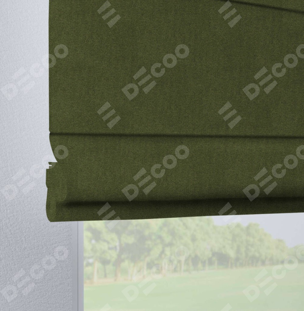 Римская штора производителя «Cortin», используется для проёма, пошита из ткани лён димаут салатовый, артикул ткани 91002. Данная модель пошита на петлях, комплектуется на выбор круглым карнизом и подходит для монтажа на стену. Римская штора на петлях имеет простую систему регулировки высоты, отличительным преимуществом данной модели является простой способ монтажа. Достаточно повесить ее на трубу и штора готова!