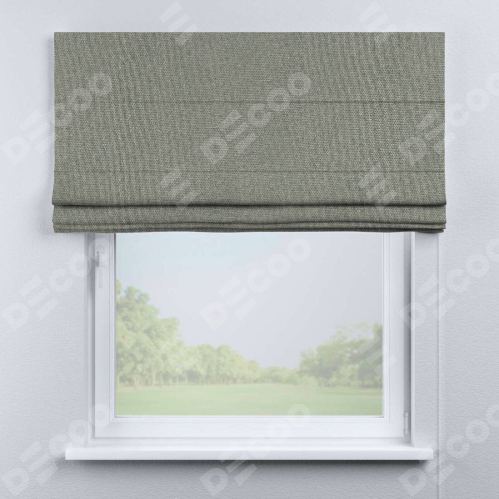 Римская штора производителя «Cortin», используется для проёма, пошита из ткани лён димаут серый, артикул ткани 91009. Имеет универсальный механизм и подходит для монтажа: на потолок, на стену и в нишу.