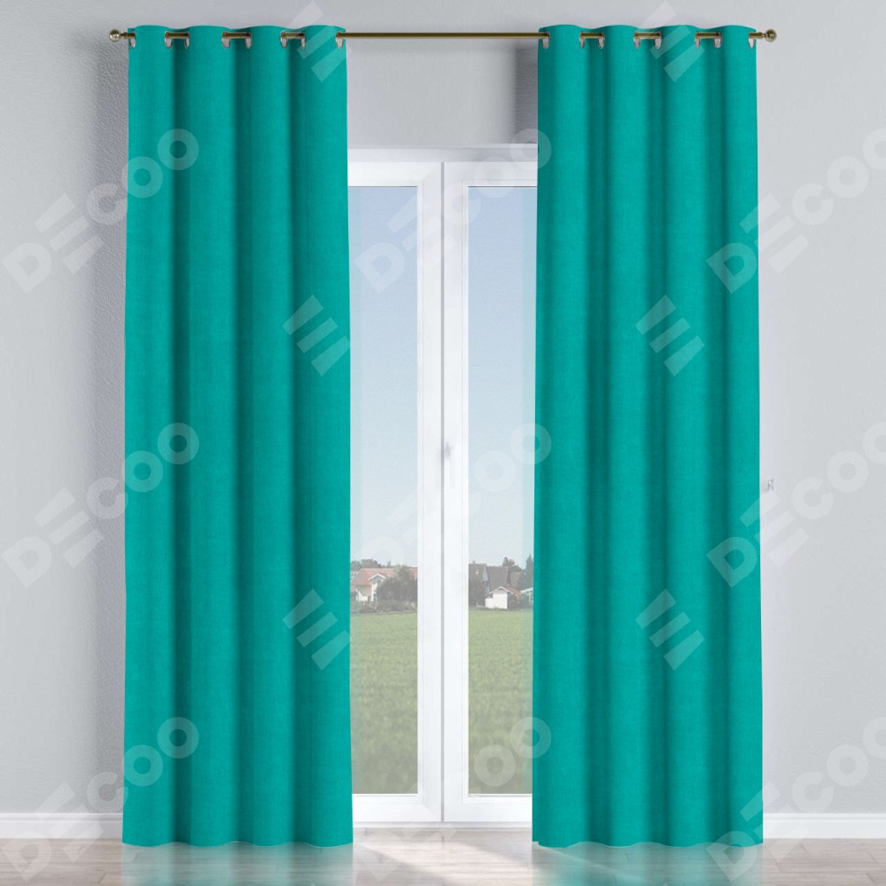 Комплект прямых штор, от производителя «Cortin», пошиты из ткани канвас бирюзовый, артикул ткани v-1048. Данная модель пошита на люверсах, комплектуется на выбор круглым карнизом и подходит для монтажа на стену или потолок. Прямые шторы на люверсах шьются по стандарту с коэффициентом 1/2 (на 100 см. ширины проёма 200 см. ширины ткани), отличительным преимуществом данной модели является простой способ монтажа. Достаточно повесить ее на трубу и штора готова!