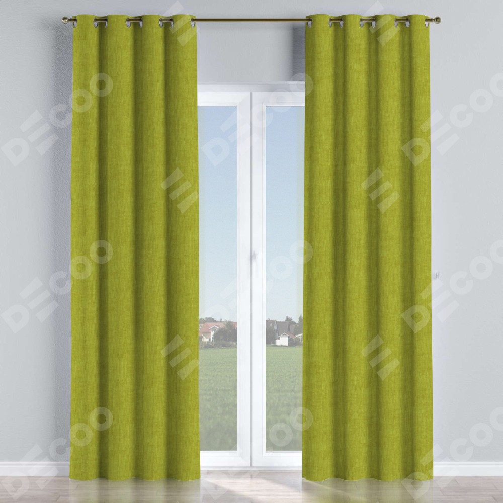 Комплект прямых штор, от производителя «Cortin», пошиты из ткани канвас зелёное яблоко, артикул ткани v-370. Данная модель пошита на люверсах, комплектуется на выбор круглым карнизом и подходит для монтажа на стену или потолок. Прямые шторы на люверсах шьются по стандарту с коэффициентом 1/2 (на 100 см. ширины проёма 200 см. ширины ткани), отличительным преимуществом данной модели является простой способ монтажа. Достаточно повесить ее на трубу и штора готова!