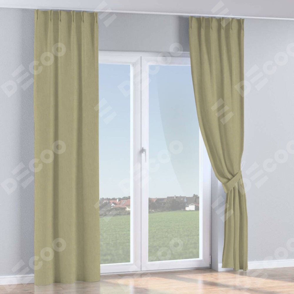 Комплект прямых штор, от производителя «Cortin», пошиты из ткани канвас латте, артикул ткани v-12490. С изнаночной стороны в верхней части штор пристрачивается шторная лента с декоративными складками «Кустик». Для создания элегантных складок прямые шторы шьются по стандарту с коэффициентом 1:2 (на 100 см. ширины проёма 200 см. ширины ткани).