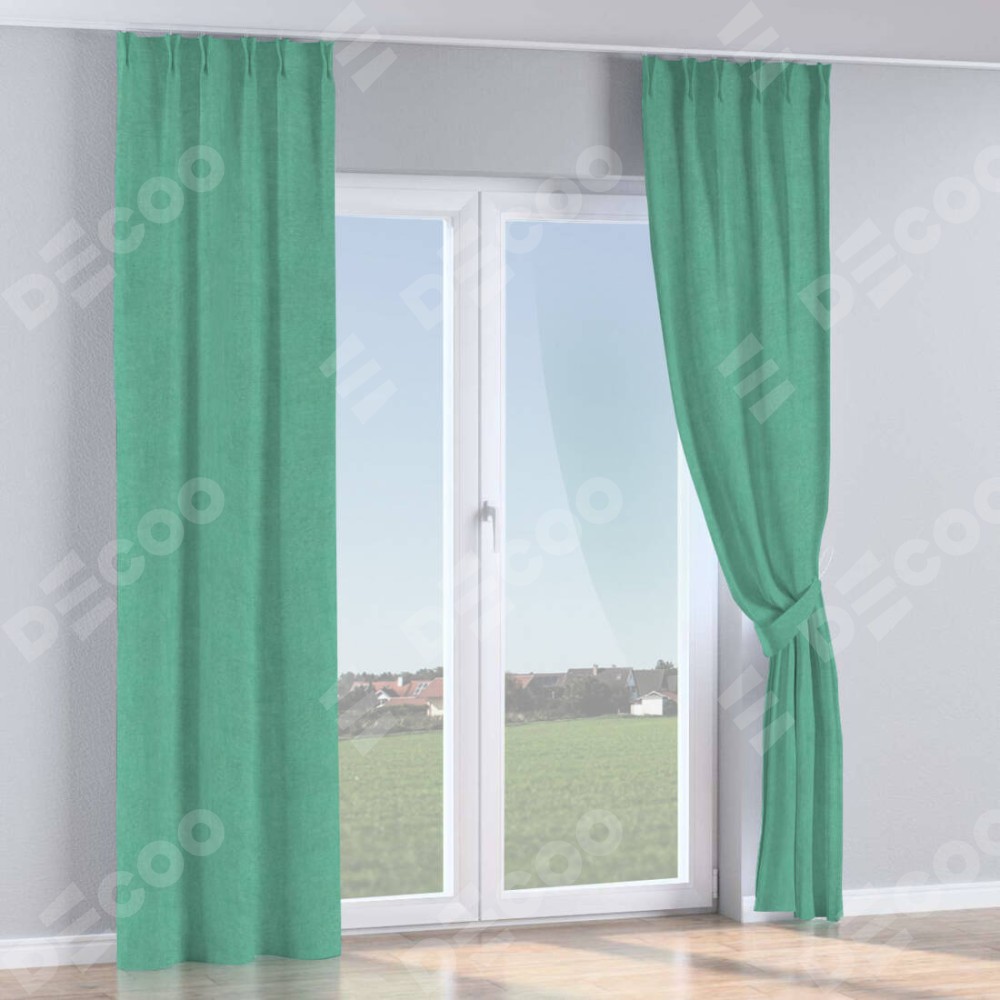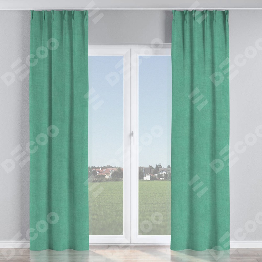 Комплект прямых штор, от производителя «Cortin», пошиты из ткани канвас канвас мятный, артикул ткани v-248. С изнаночной стороны в верхней части штор пристрачивается шторная лента с декоративными складками «Кустик». Для создания элегантных складок прямые шторы шьются по стандарту с коэффициентом 1:2 (на 100 см. ширины проёма 200 см. ширины ткани).