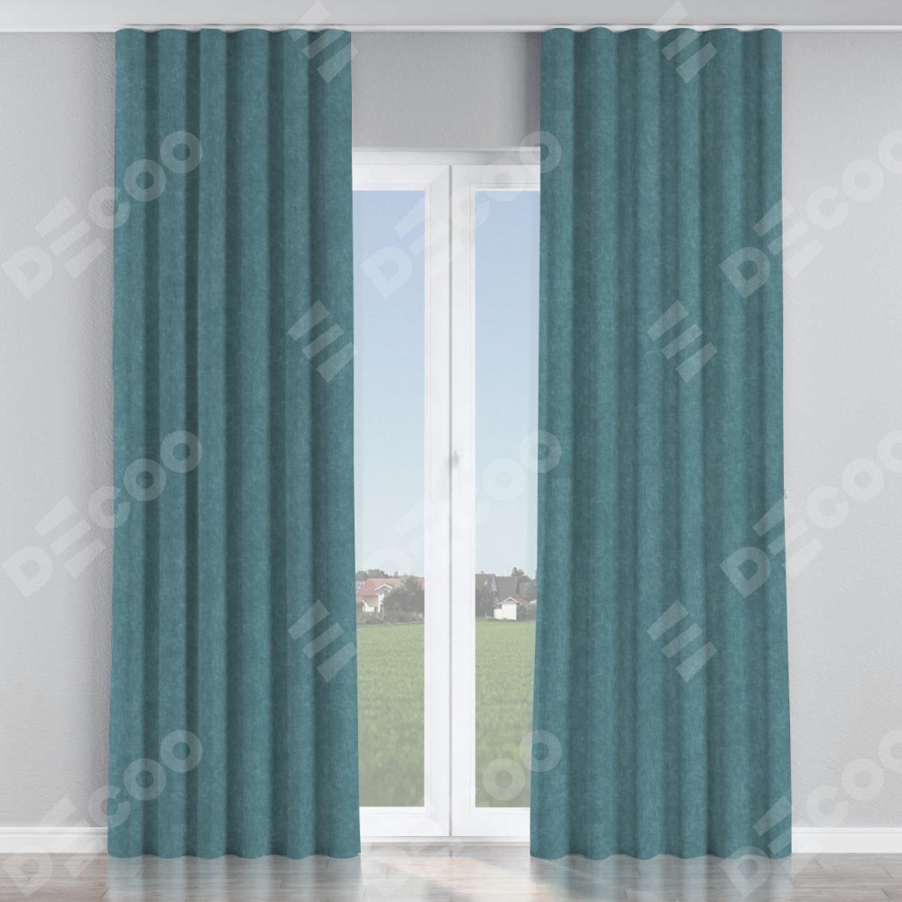 Комплект прямых штор, от производителя «Cortin», пошиты из ткани канвас серо-голубой, артикул ткани v-330. С изнаночной стороны в верхней части штор пристрачивается шторная лента с декоративными складками «Волна». Для создания элегантных складок прямые шторы шьются по стандарту с коэффициентом 1:2 (на 100 см. ширины проёма 200 см. ширины ткани).
