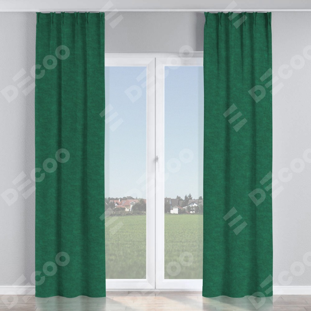 Комплект прямых штор, от производителя «Cortin», пошиты из ткани канвас тёмно-зелёный, артикул ткани v-469. С изнаночной стороны в верхней части штор пристрачивается шторная лента с декоративными складками «Кустик». Для создания элегантных складок прямые шторы шьются по стандарту с коэффициентом 1:2 (на 100 см. ширины проёма 200 см. ширины ткани).
