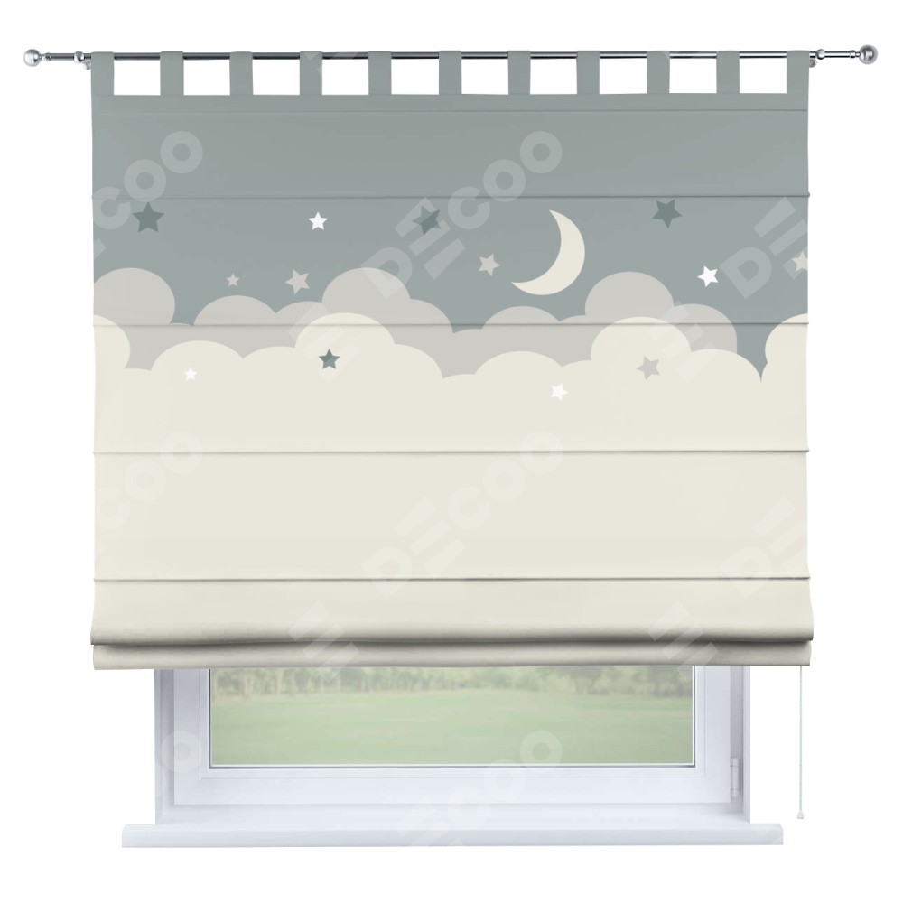 Римская штора производителя «Cortin», используется для проёма, пошита из ткани блэкаут с нанесением сублимационной печати «Ночные облака». Данная модель пошита на петлях, комплектуется на выбор круглым карнизом и подходит для монтажа на стену. Римская штора на петлях имеет простую систему регулировки высоты, отличительным преимуществом данной модели является простой способ монтажа. Достаточно повесить ее на трубу и штора готова!