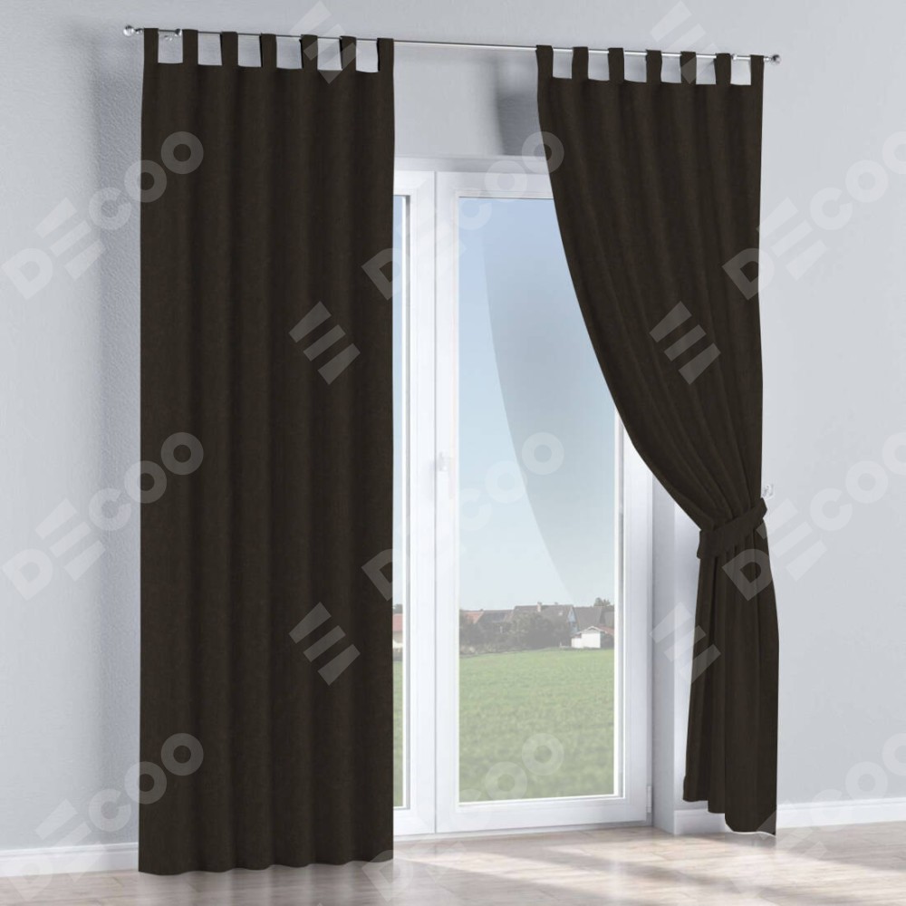 Комплект прямых штор, от производителя «Cortin», пошиты из ткани канвас тёмно-коричневый, артикул ткани v-13. Данная модель пошита на петлях, комплектуется на выбор круглым карнизом и подходит для монтажа на стену или потолок. Прямые шторы на петлях шьются по стандарту с коэффициентом 1/2 (на 100 см. ширины проёма 200 см. ширины ткани), отличительным преимуществом данной модели является простой способ монтажа. Достаточно повесить ее на трубу и штора готова!