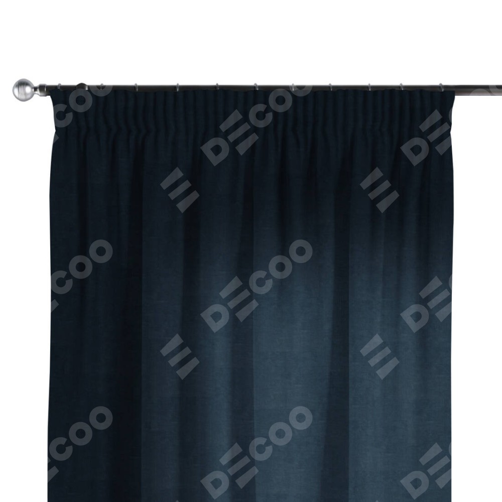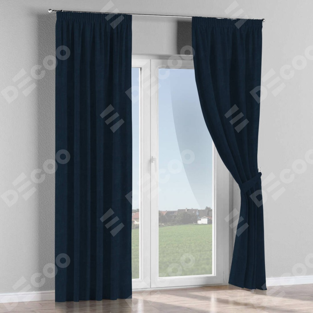 Комплект прямых штор, от производителя «Cortin», пошиты из ткани канвас тёмно-синий, артикул ткани v-206. С изнаночной стороны в верхней части штор пристрачивается шторная лента с декоративными складками «Карандаш». Для создания элегантных складок прямые шторы шьются по стандарту с коэффициентом 1:2 (на 100 см. ширины проёма 200 см. ширины ткани).