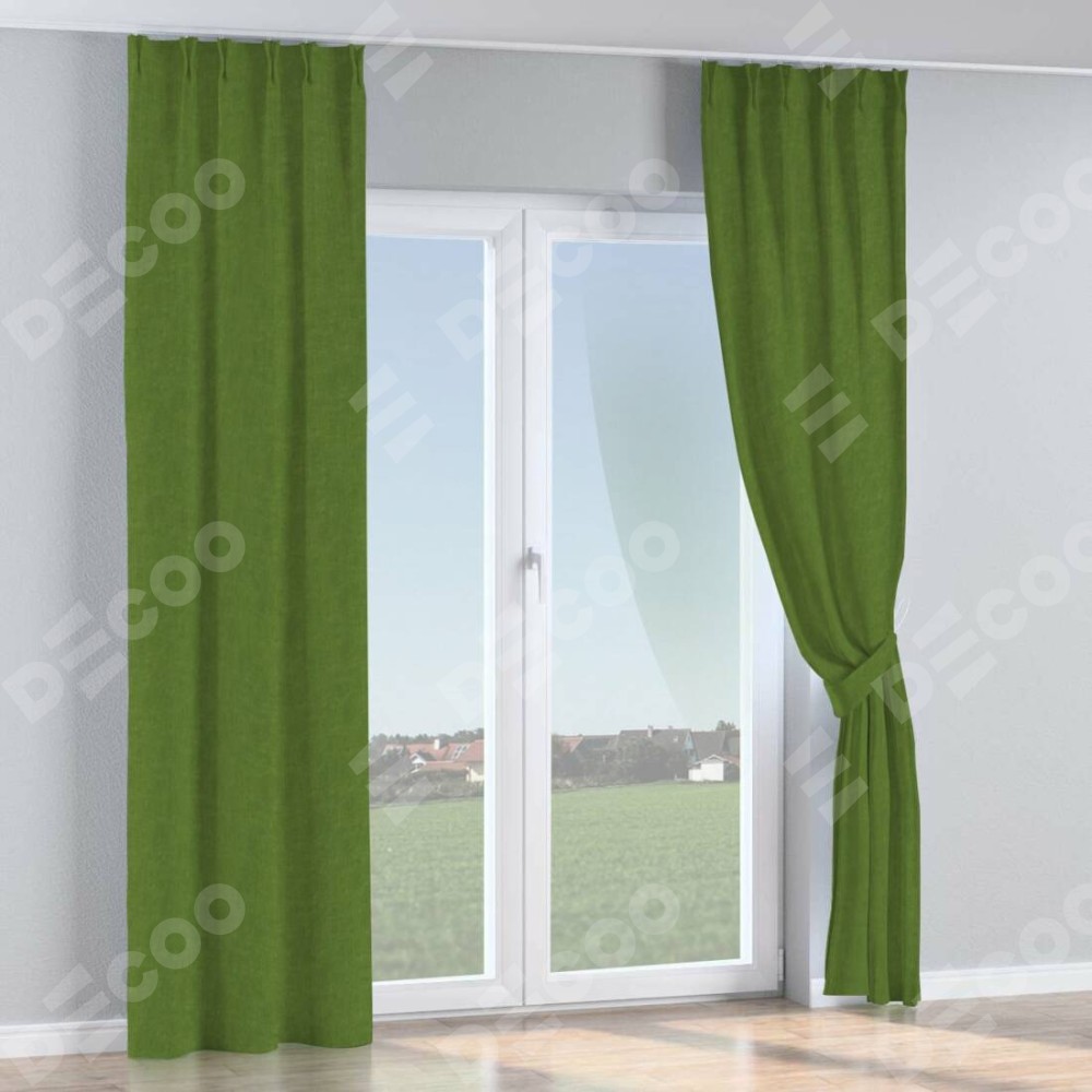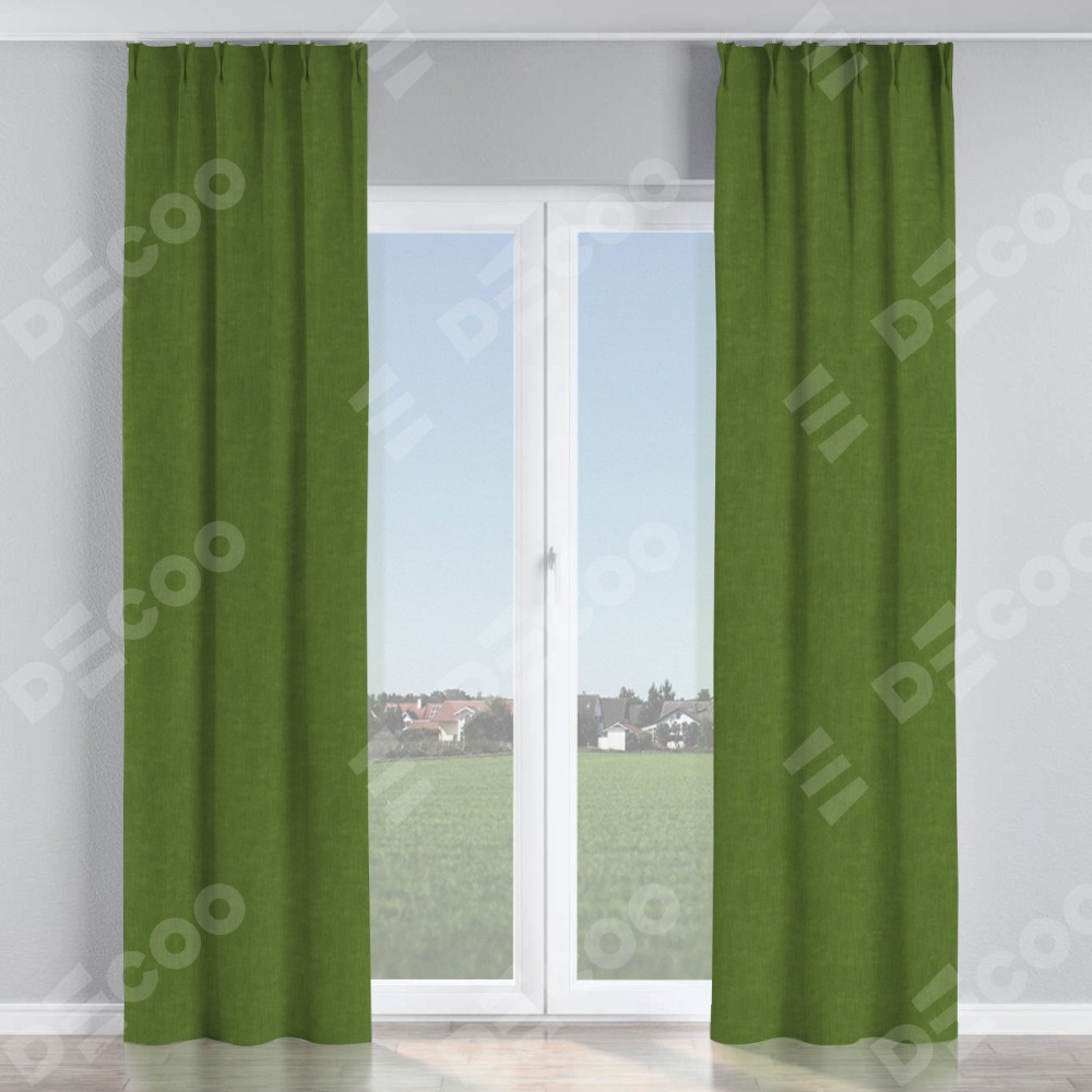 Комплект прямых штор, от производителя «Cortin», пошиты из ткани канвас трава, артикул ткани v-473. С изнаночной стороны в верхней части штор пристрачивается шторная лента с декоративными складками «Кустик». Для создания элегантных складок прямые шторы шьются по стандарту с коэффициентом 1:2 (на 100 см. ширины проёма 200 см. ширины ткани).