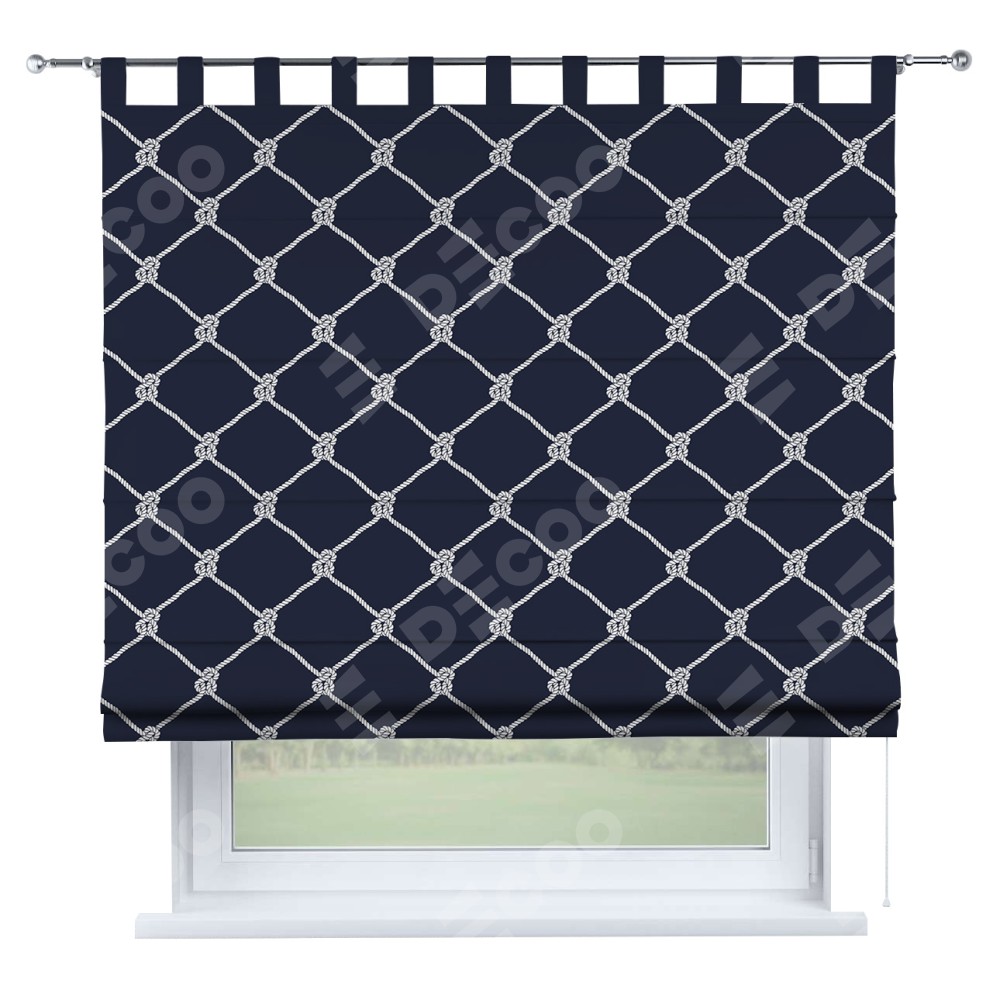 Римская штора производителя «Cortin», используется для проёма, пошита из ткани блэкаут с нанесением сублимационной печати «Морские веревки». Данная модель пошита на петлях, комплектуется на выбор круглым карнизом и подходит для монтажа на стену. Римская штора на петлях имеет простую систему регулировки высоты, отличительным преимуществом данной модели является простой способ монтажа. Достаточно повесить ее на трубу и штора готова!
