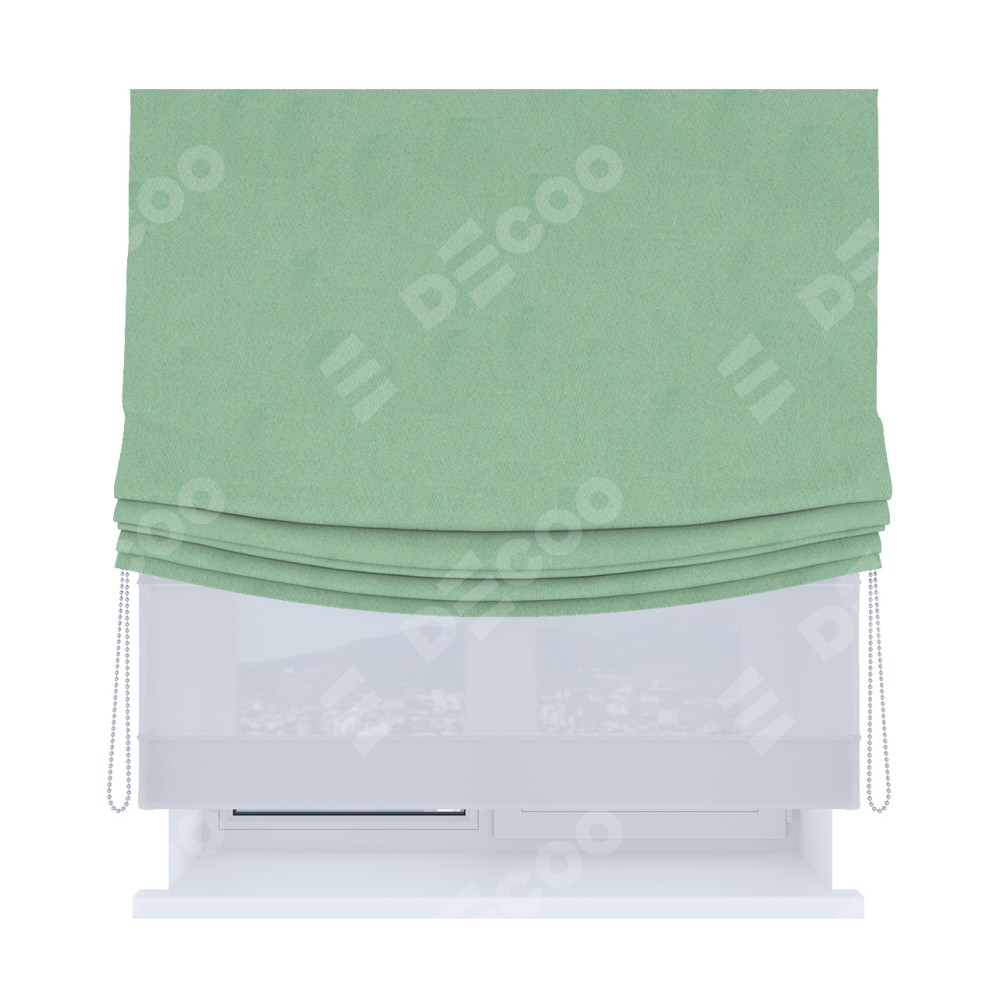 Римская штора день-ночь производителя «Cortin», используется для проёма, пошита из двух полотен, с лицевой стороны блэкаут однотонный ментоловый артикул 91572−1, вторая ткань тюль (по стандарту комплектуется тюль белого цвета артикул V-01). Имеет универсальный механизм и подходит для монтажа: на потолок, на стену и в нишу. Удобное управление каждой шторой отдельно.