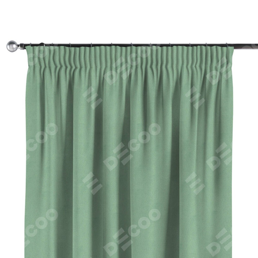 Комплект прямых штор, от производителя «Cortin», пошиты из ткани блэкаут однотонный ментоловый, артикул ткани 91572−1. С изнаночной стороны в верхней части штор пристрачивается шторная лента с декоративными складками «Карандаш». Для создания элегантных складок прямые шторы шьются по стандарту с коэффициентом 1:2 (на 100 см. ширины проёма 200 см. ширины ткани).