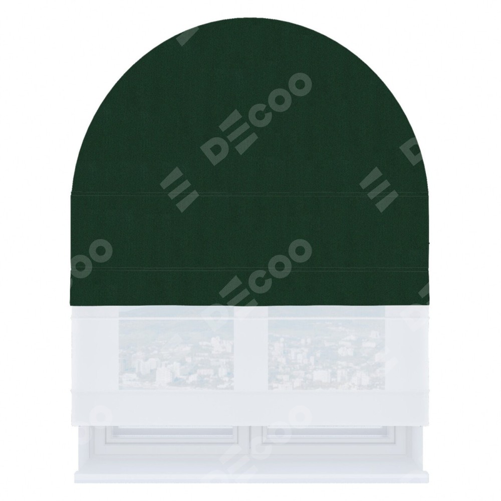 Римская штора «Кортин», блэкаут однотонный зелёный, день-ночь для арочного проёма