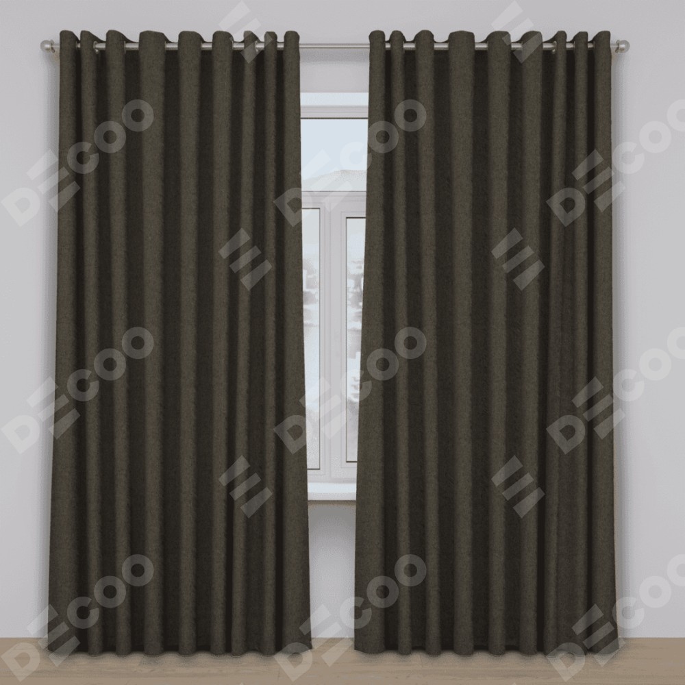 Комплект прямых штор, от производителя «Cortin», пошиты из ткани твид блэкаут тёмно-коричневый, артикул ткани 21584. Данная модель пошита на люверсах, комплектуется на выбор круглым карнизом и подходит для монтажа на стену. Прямые шторы на люверсах шьются по стандарту с коэффициентом 1/2 (на 100 см. ширины проёма 200 см. ширины ткани), отличительным преимуществом данной модели является простой способ монтажа. Достаточно повесить ее на трубу и штора готова!
