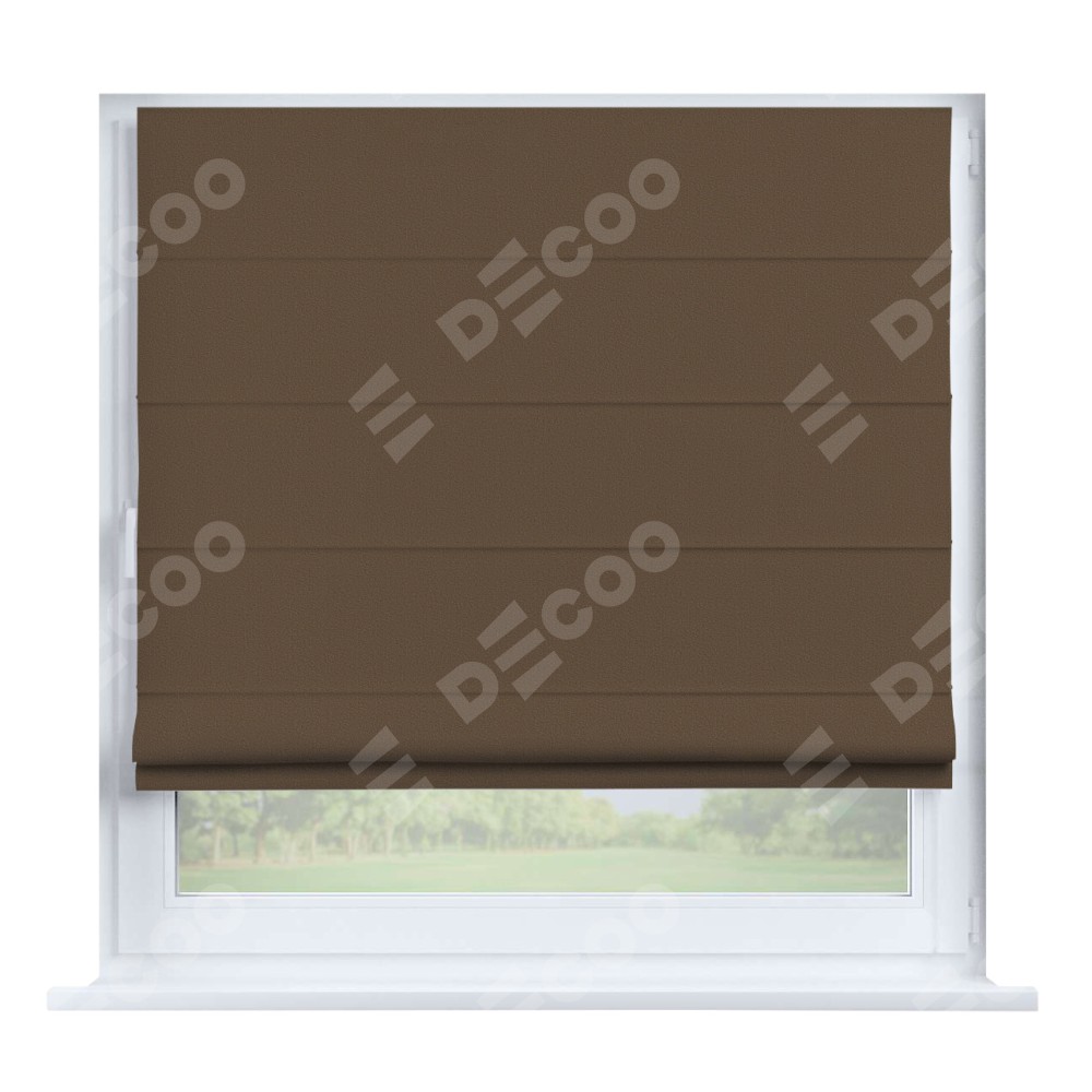 Римская штора производителя «Cortin», устанавливается на створку окна, пошита из ткани блэкаут однотонный коричневый, артикул 91334. Штора шьётся по индивидуальным размерам, для данного типа римской шторы возможная ширина от 35 до 150 см., высота до 250 см.