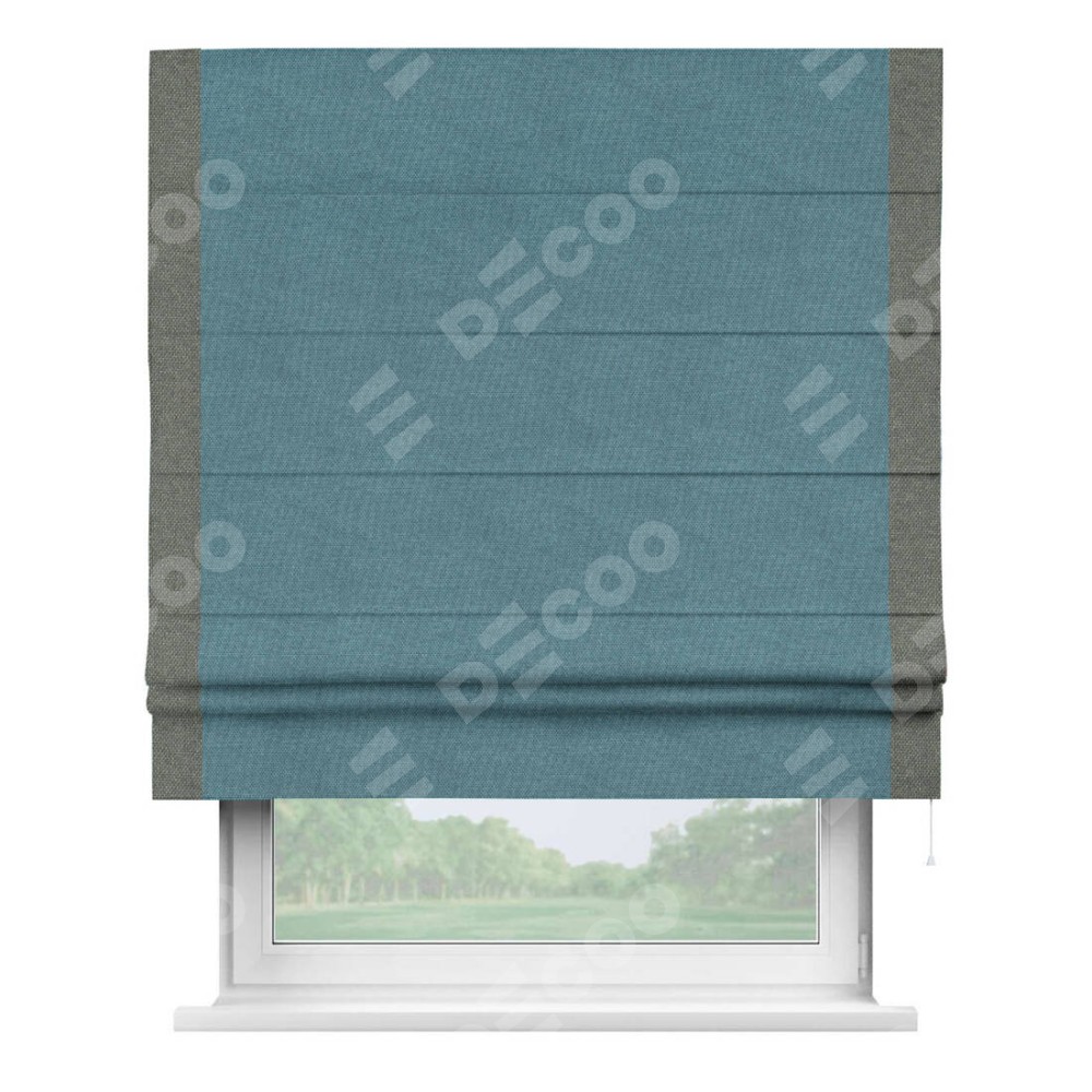 Римская штора «Кортин» для проема, лён димаут светло-синий с кантом Стрим Дуо