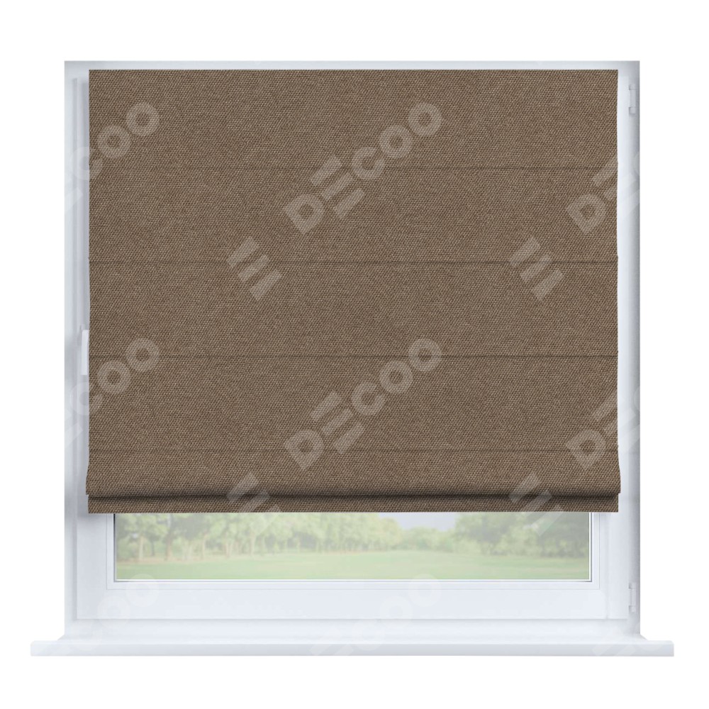 Римская штора производителя «Cortin», устанавливается на створку окна, пошита из ткани лён димаут коричневый, артикул 90996. Штора шьётся по индивидуальным размерам, для данного типа римской шторы возможная ширина от 35 до 150 см., высота до 250 см.