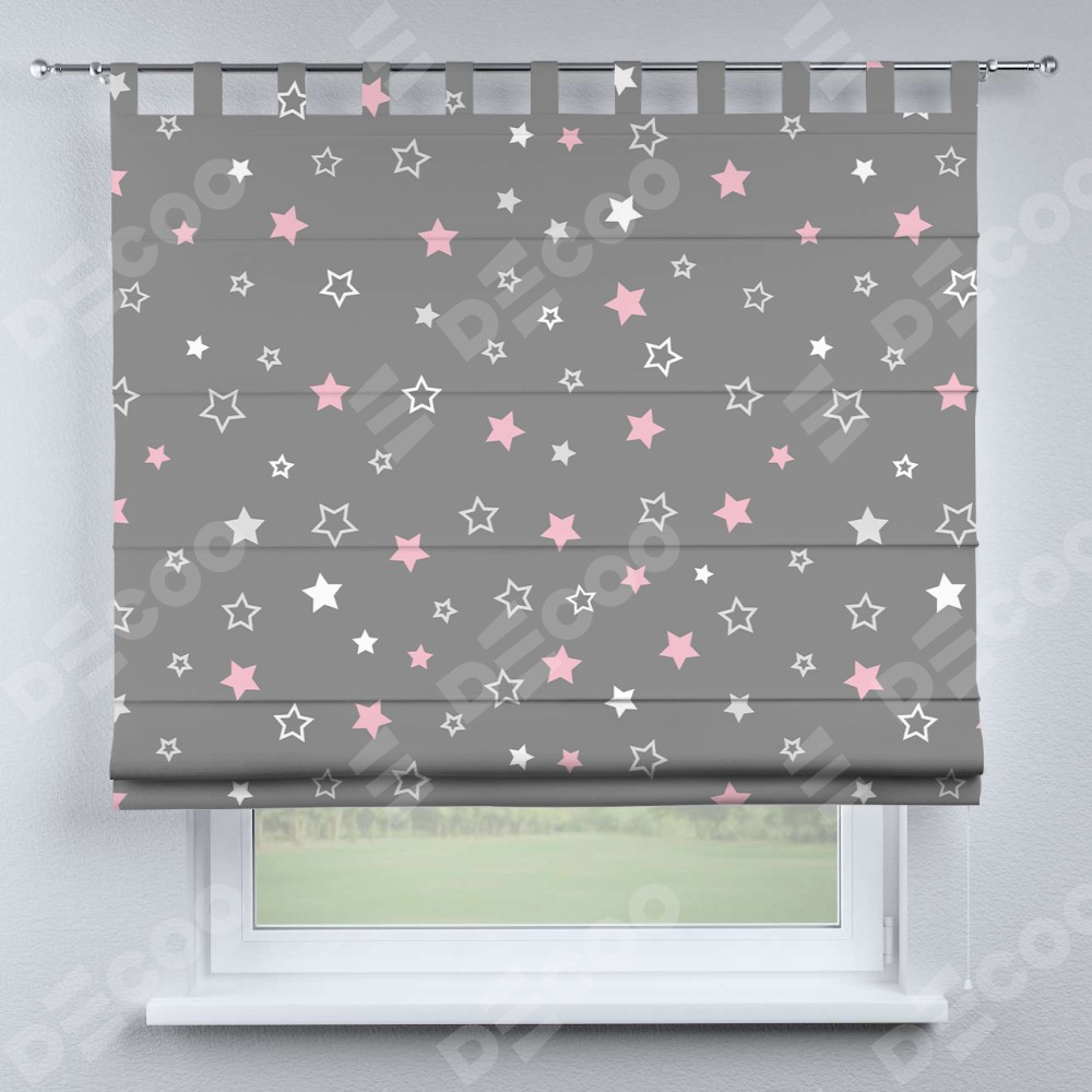 Римская штора производителя «Cortin», используется для проёма, пошита из ткани блэкаут с нанесением сублимационной печати «Розовый звездопад». Данная модель пошита на петлях, комплектуется на выбор круглым карнизом и подходит для монтажа на стену. Римская штора на петлях имеет простую систему регулировки высоты, отличительным преимуществом данной модели является простой способ монтажа. Достаточно повесить ее на трубу и штора готова!