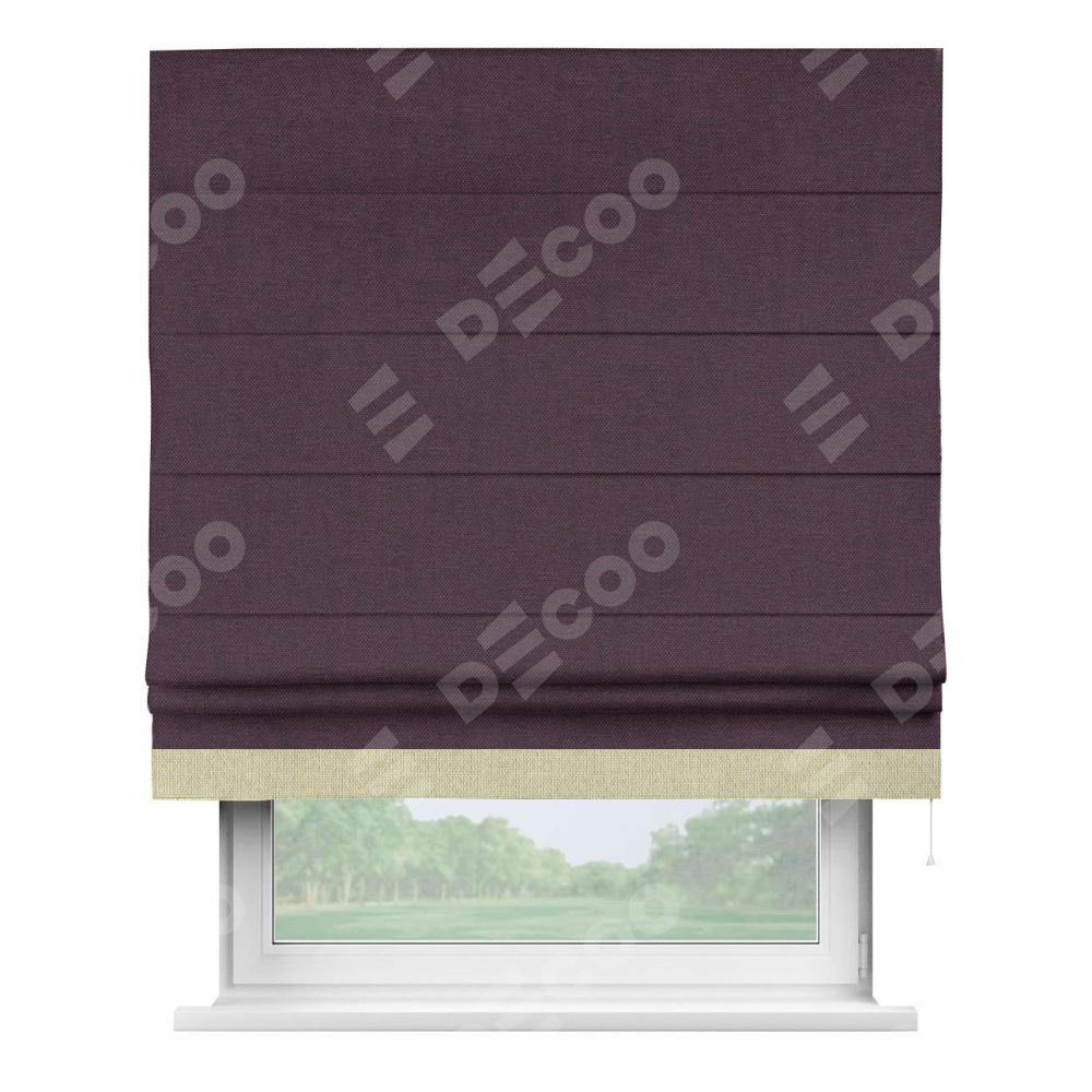 Римская штора «Кортин» для проема, лён димаут фиолетовый с кантом Джестер