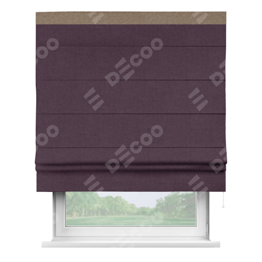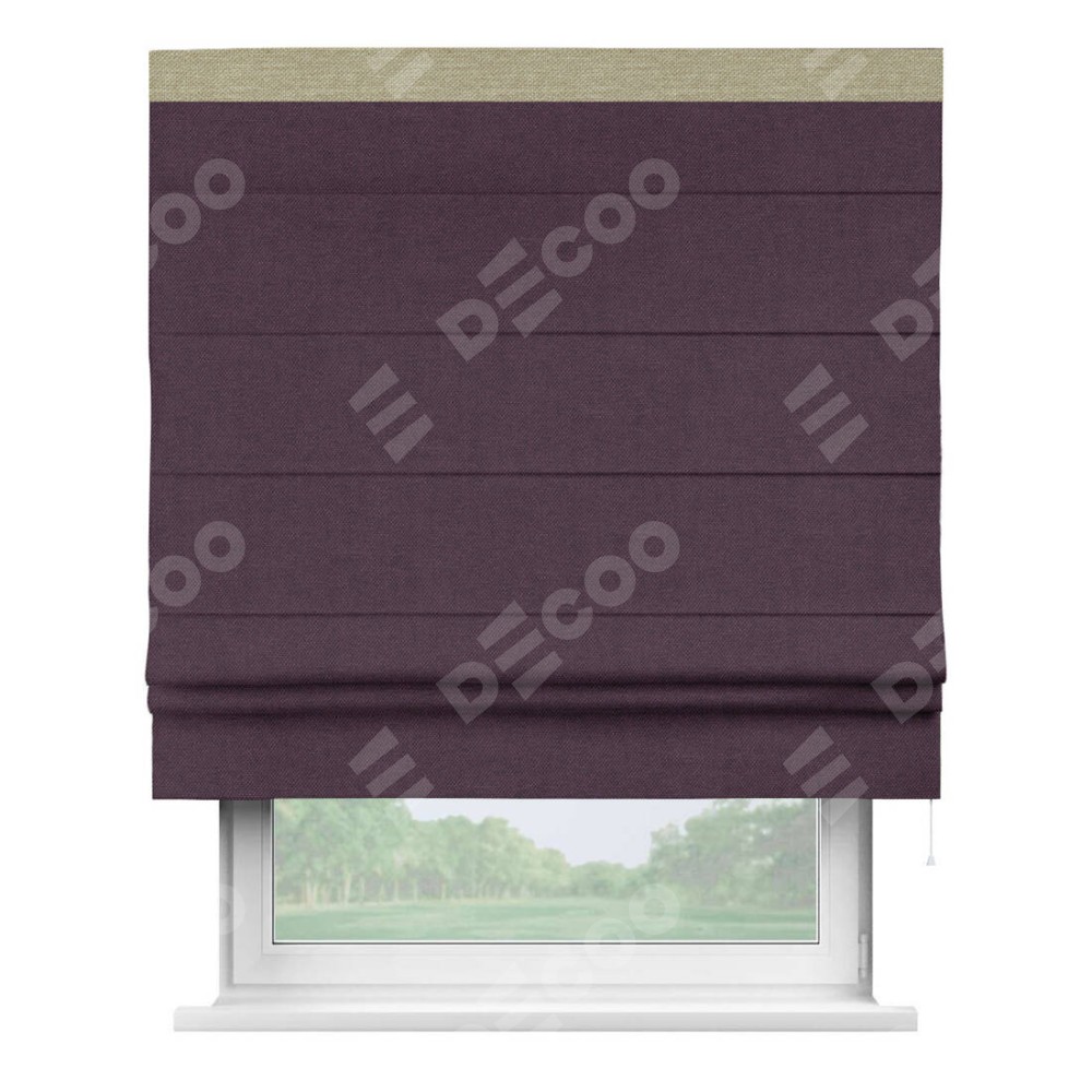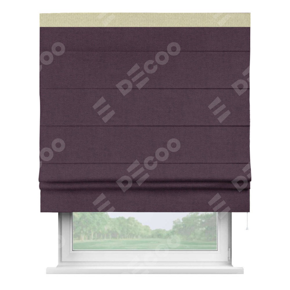 Римская штора «Кортин» для проема, лён димаут фиолетовый с кантом Кинг