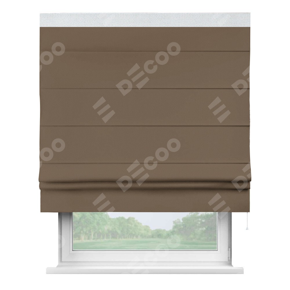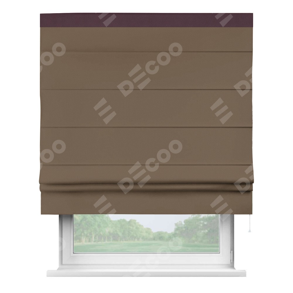 Римская штора «Кортин» для проема, блэкаут однотонный коричневый с кантом Кинг