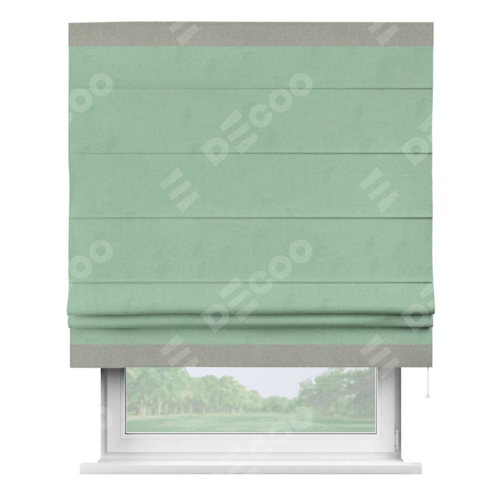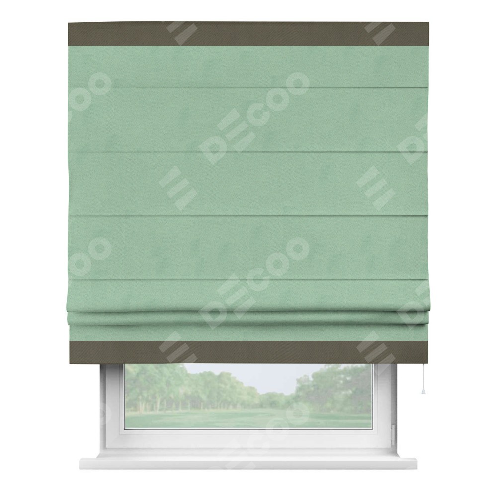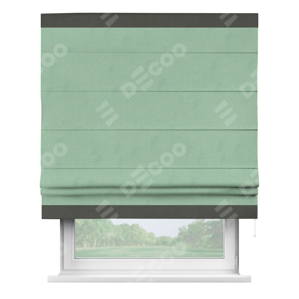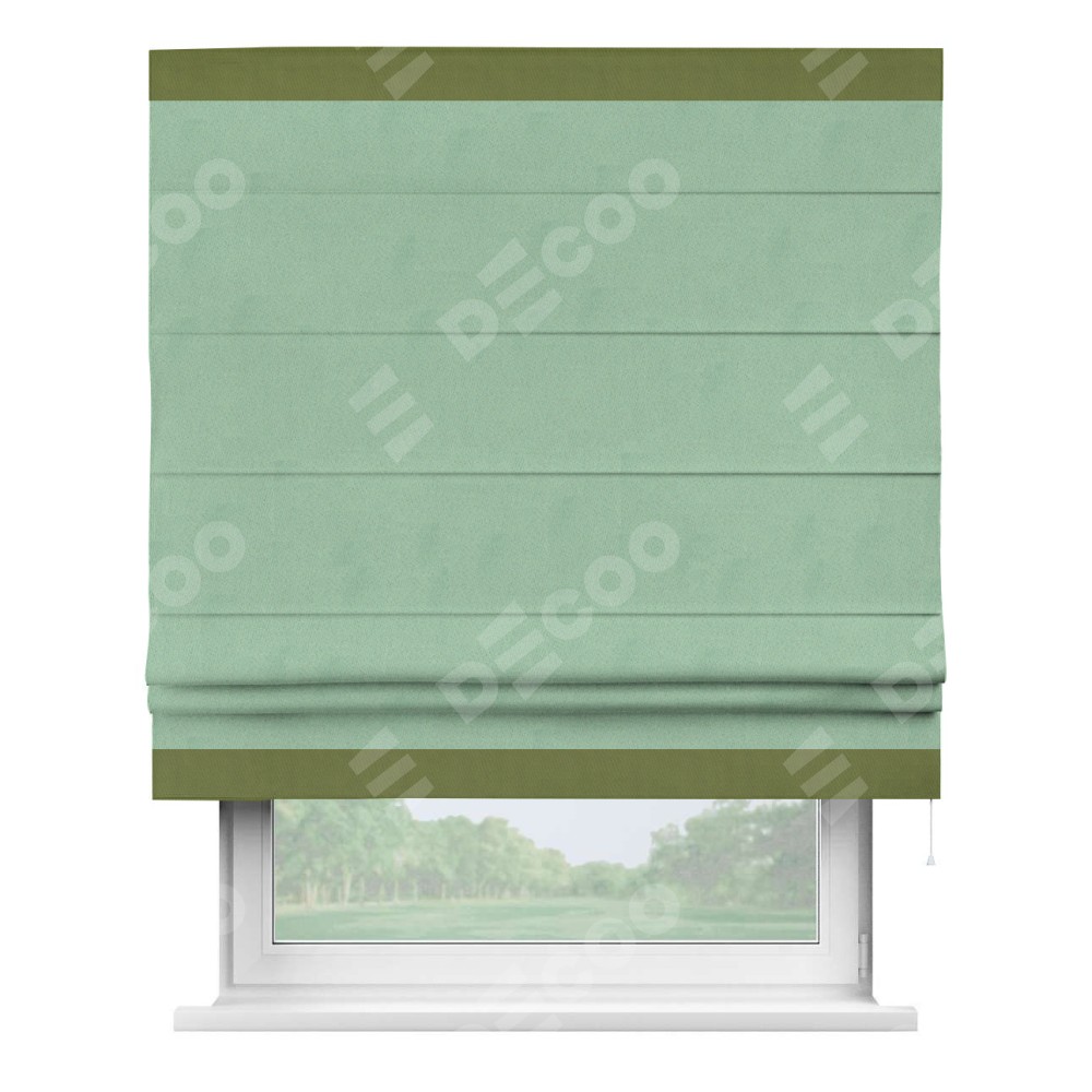 Римская штора «Кортин» для проема, блэкаут однотонный ментоловый с кантом Горизонт