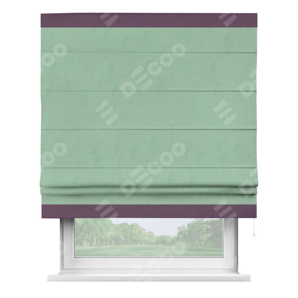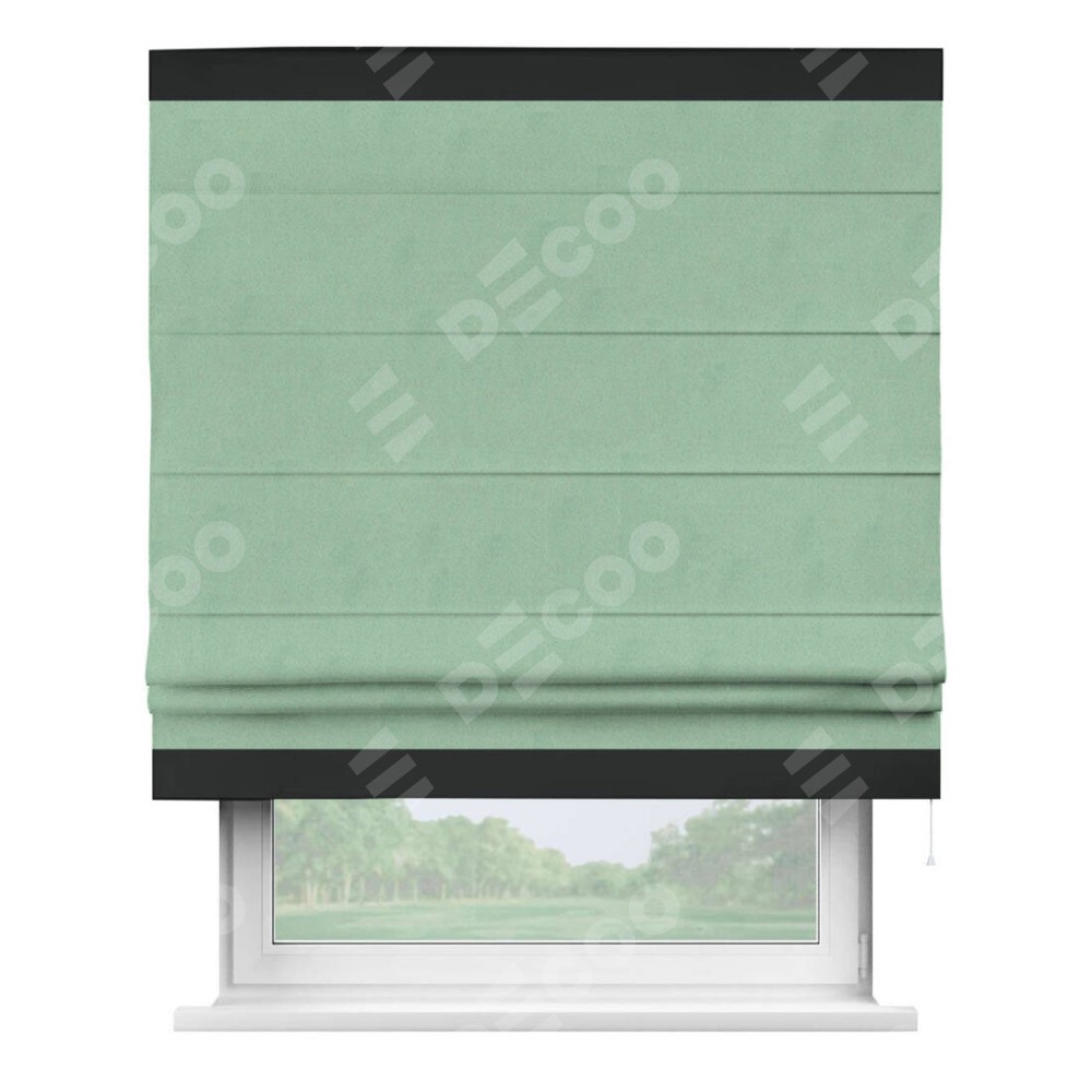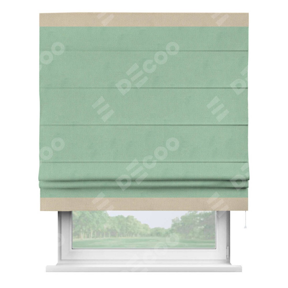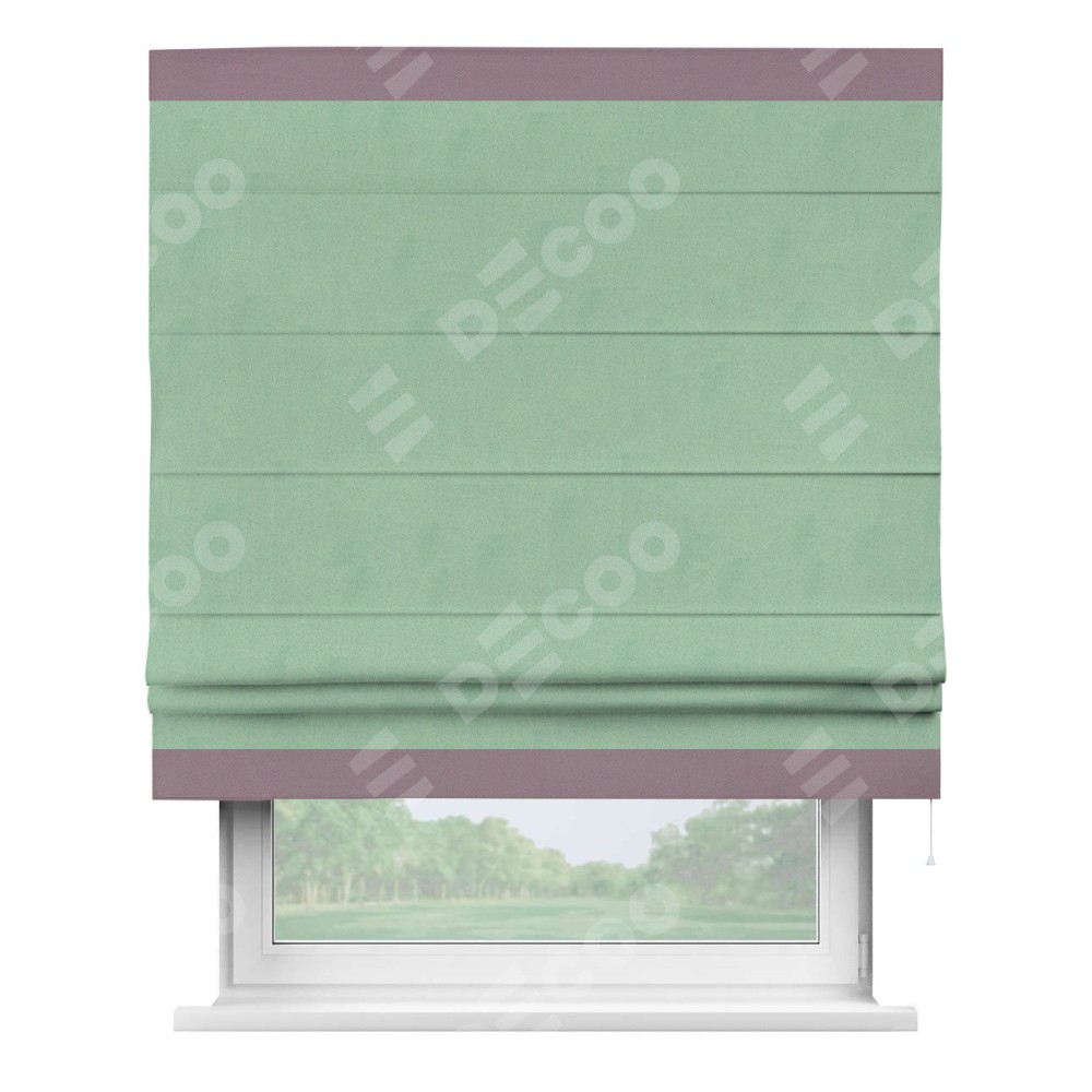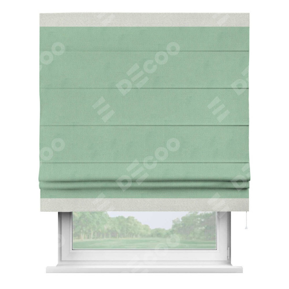 Римская штора «Кортин» для проема, блэкаут однотонный ментоловый с кантом Горизонт
