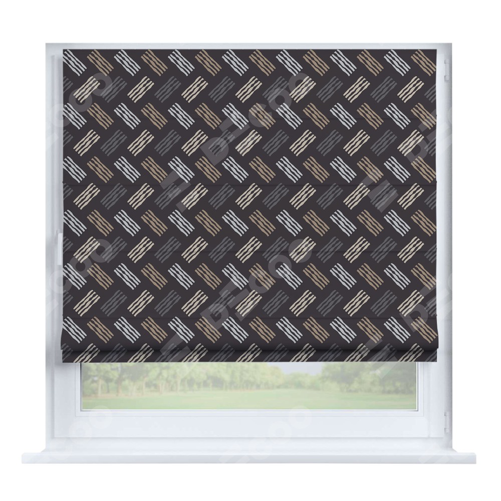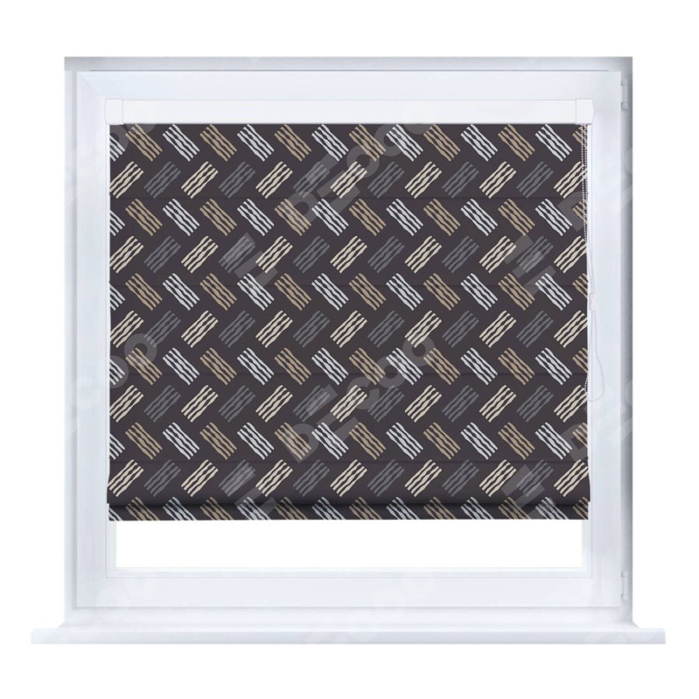Римская штора производителя «Cortin», устанавливается на створку окна, пошита из ткани блэкаут с нанесением сублимационной печати «Бохо штрихи». Штора шьётся по индивидуальным размерам, для данного типа римской шторы возможная ширина от 35 до 150 см., высота до 250 см.