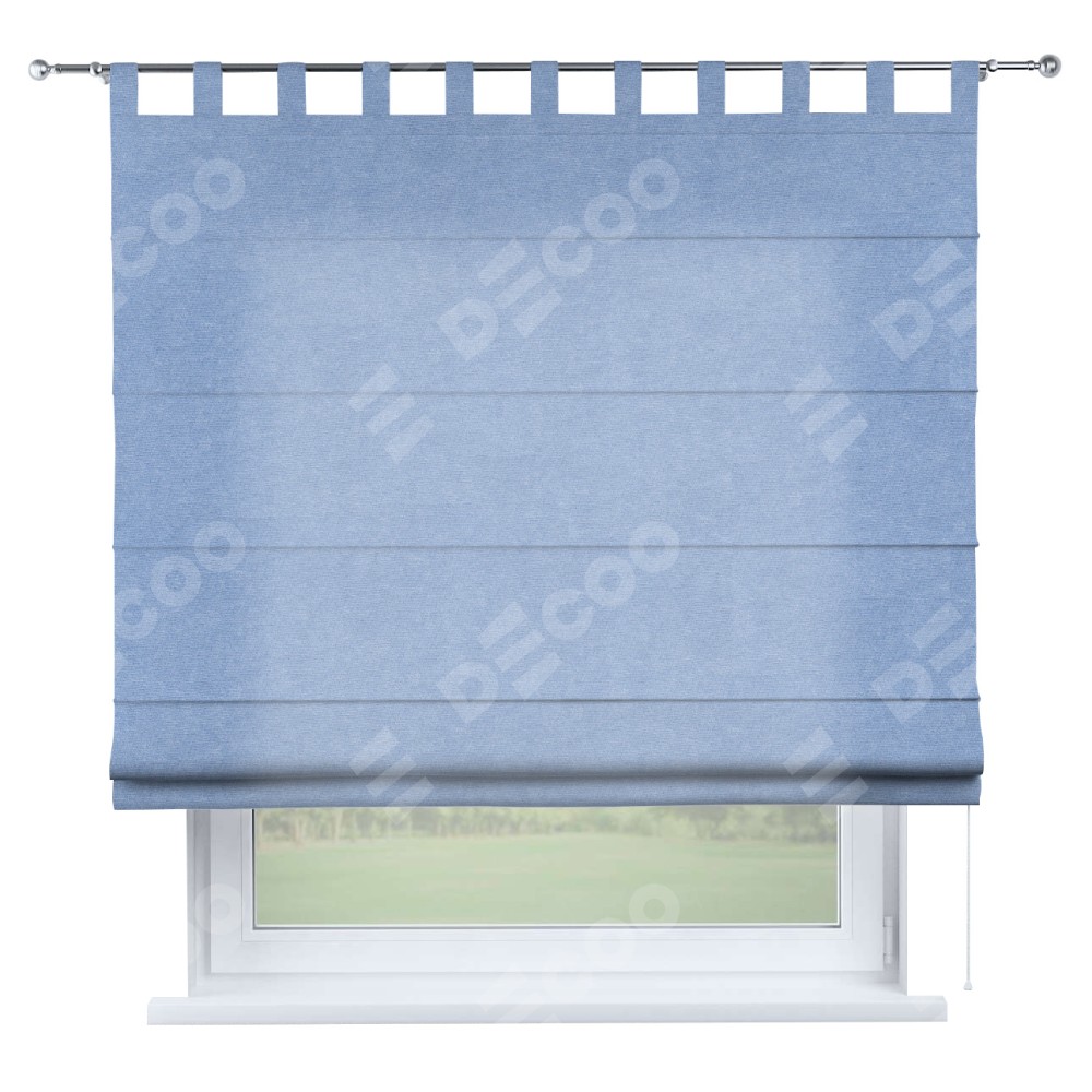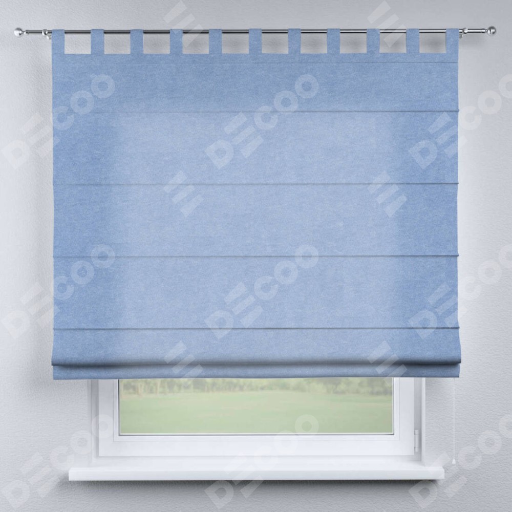 Римская штора на петлях «Кортин», ткань вельвет васильковый