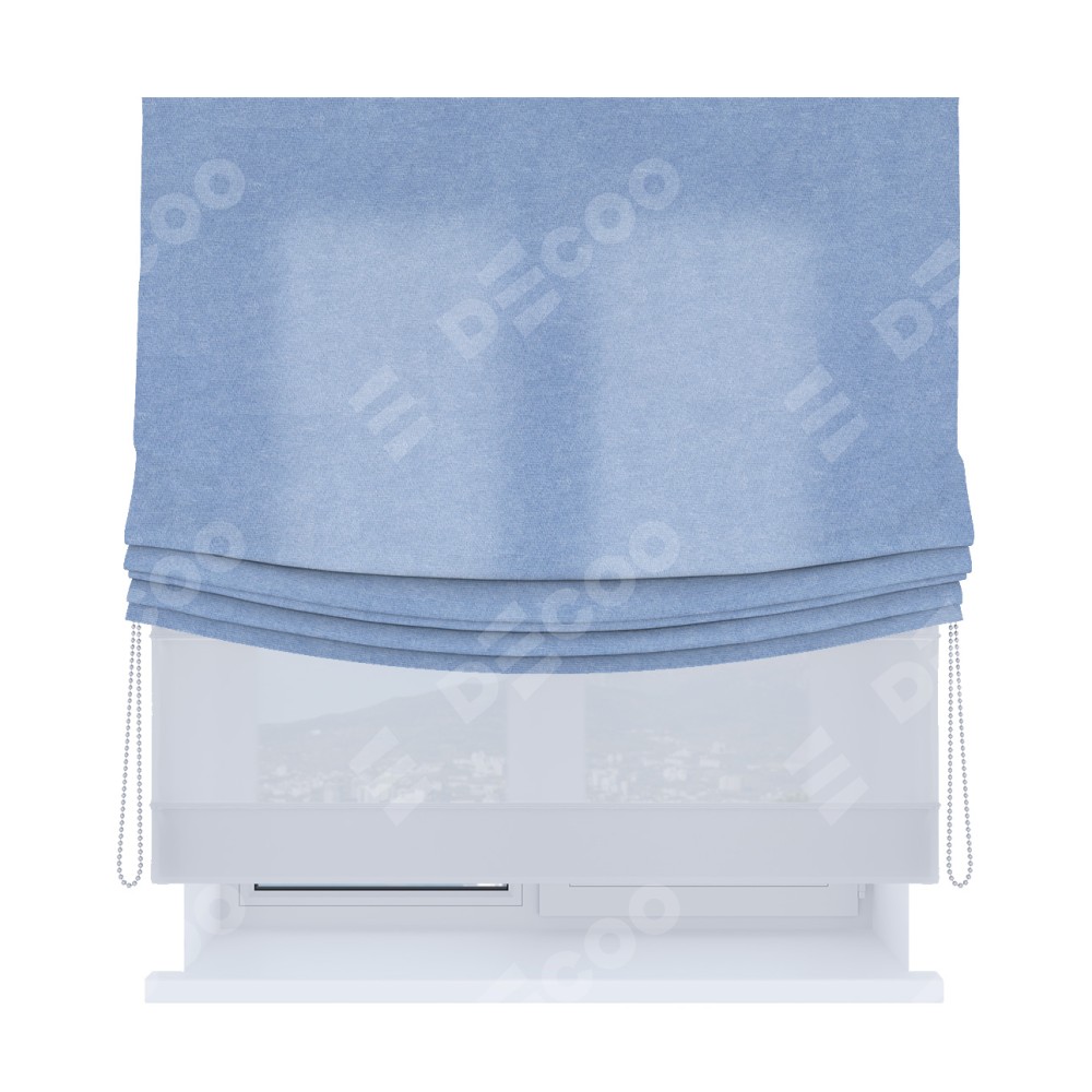 Римская штора день-ночь производителя «Cortin», используется для проёма, пошита из двух полотен, с лицевой стороны вельвет васильковый артикул 33799, вторая ткань тюль (по стандарту комплектуется тюль белого цвета артикул V-01). Имеет универсальный механизм и подходит для монтажа: на потолок, на стену и в нишу. Удобное управление каждой шторой отдельно.