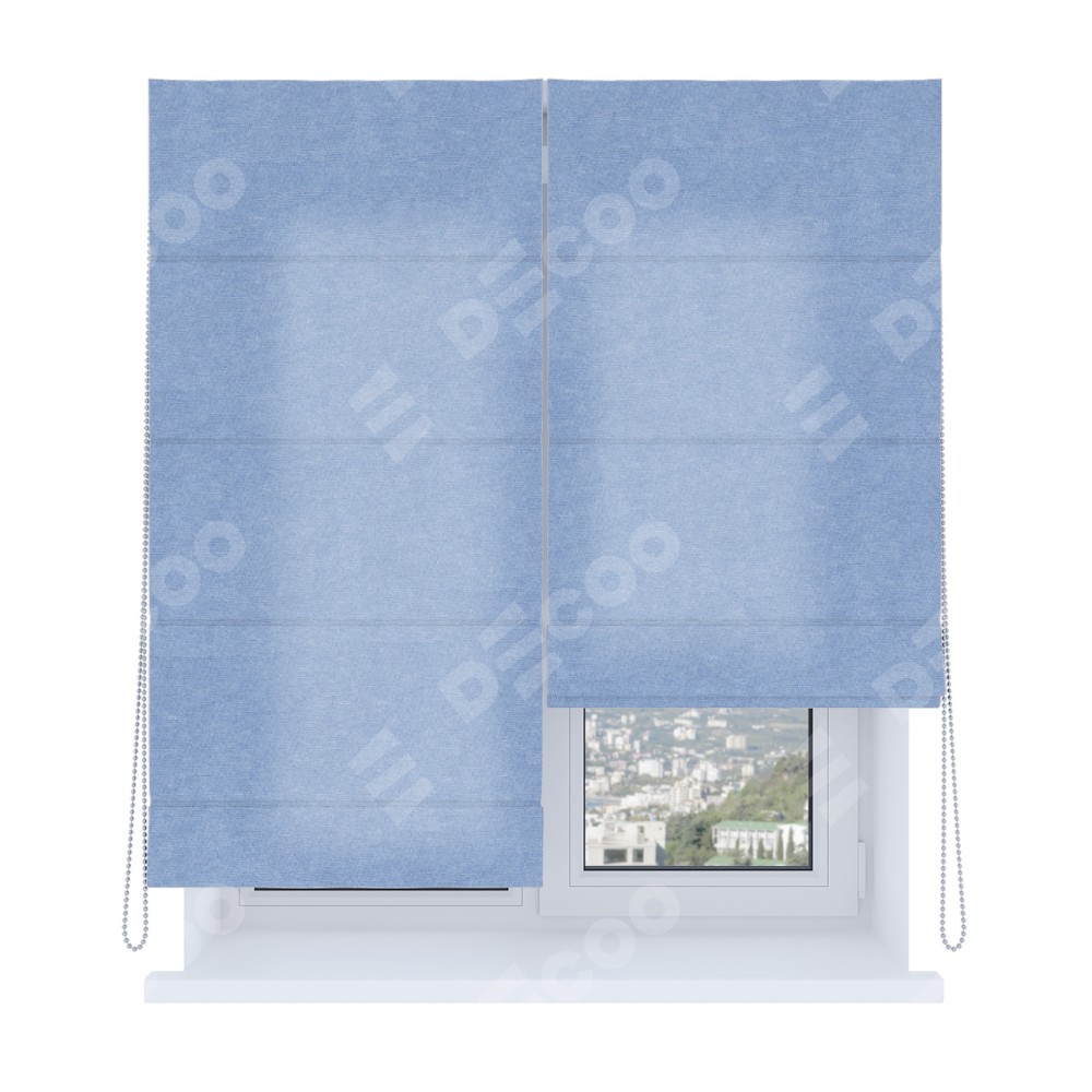Римская штора производителя «Cortin», используется для проёма, пошита из ткани вельвет васильковый, артикул ткани 33799. Имеет универсальный механизм и подходит для монтажа: на потолок, на стену и в нишу. Удобное управление каждой шторой отдельно.