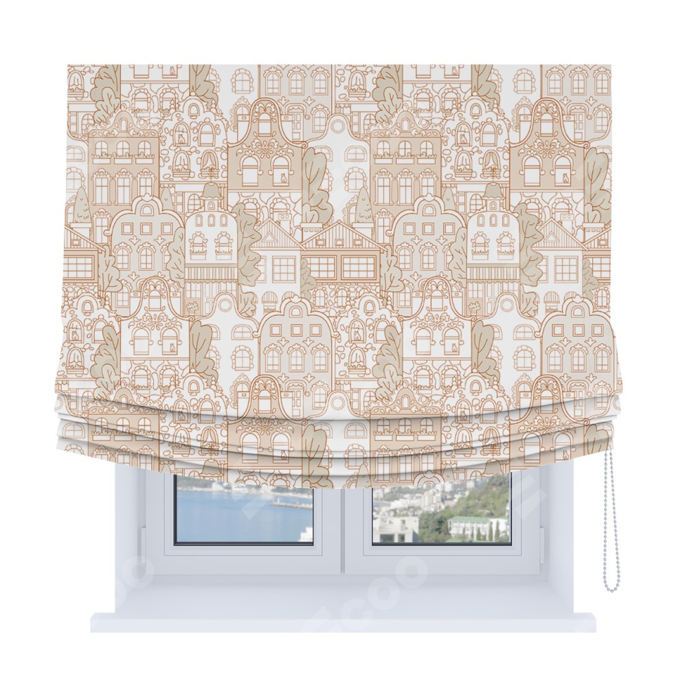 Римская штора Soft производителя «Cortin», используется для проёма, пошита из ткани блэкаут с нанесением сублимационной печати «Милый городок». Имеет универсальный механизм и подходит для монтажа: на потолок, на стену и в нишу. В отличие от стандартных римских штор, римская штора Soft не имеет горизонтальных вставок и нижнего отвеса. Это позволяет ткани произвольно драпироваться в свободные мягкие складки.