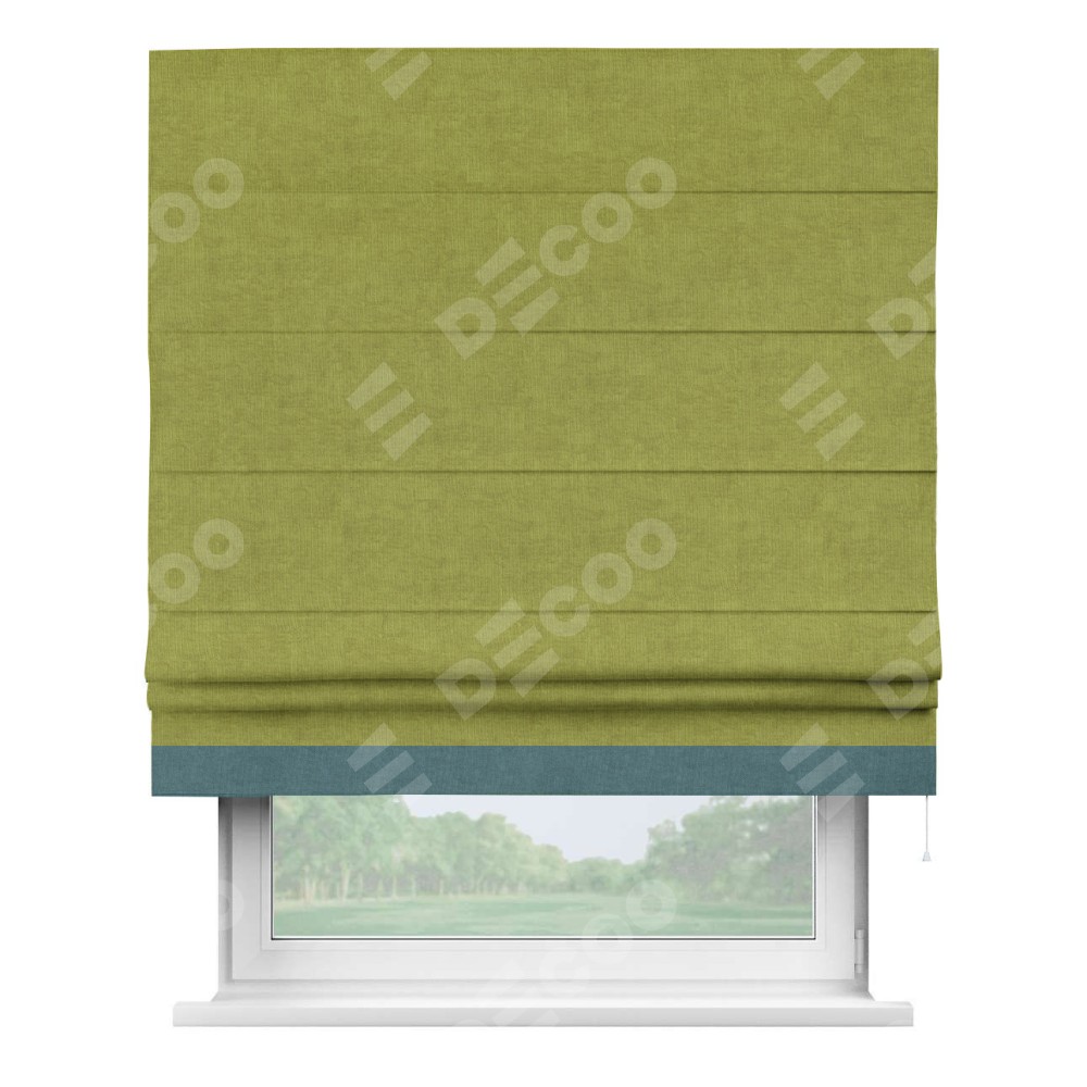 Римская штора «Кортин» для проема, канвас зелёное яблоко, с кантом Джестер