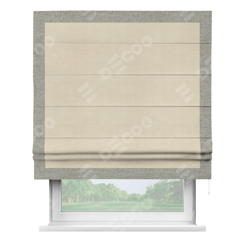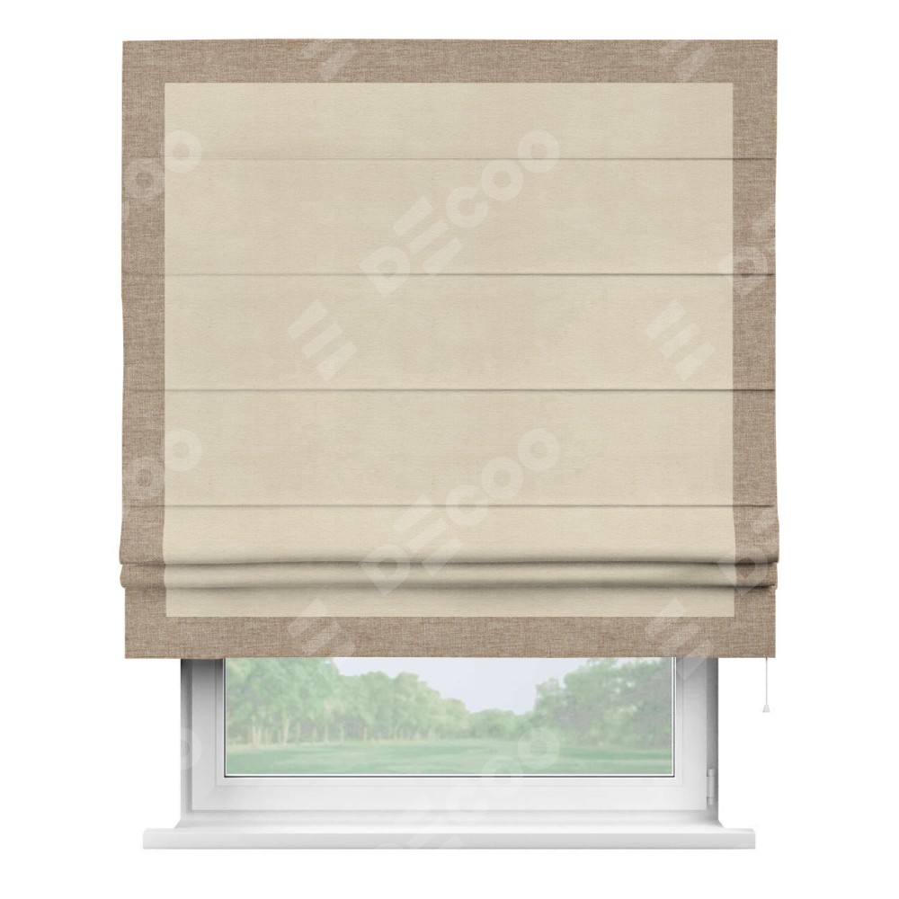 Римская штора «Кортин» с кантом Чесс, для проема, ткань лён кашемир шампань