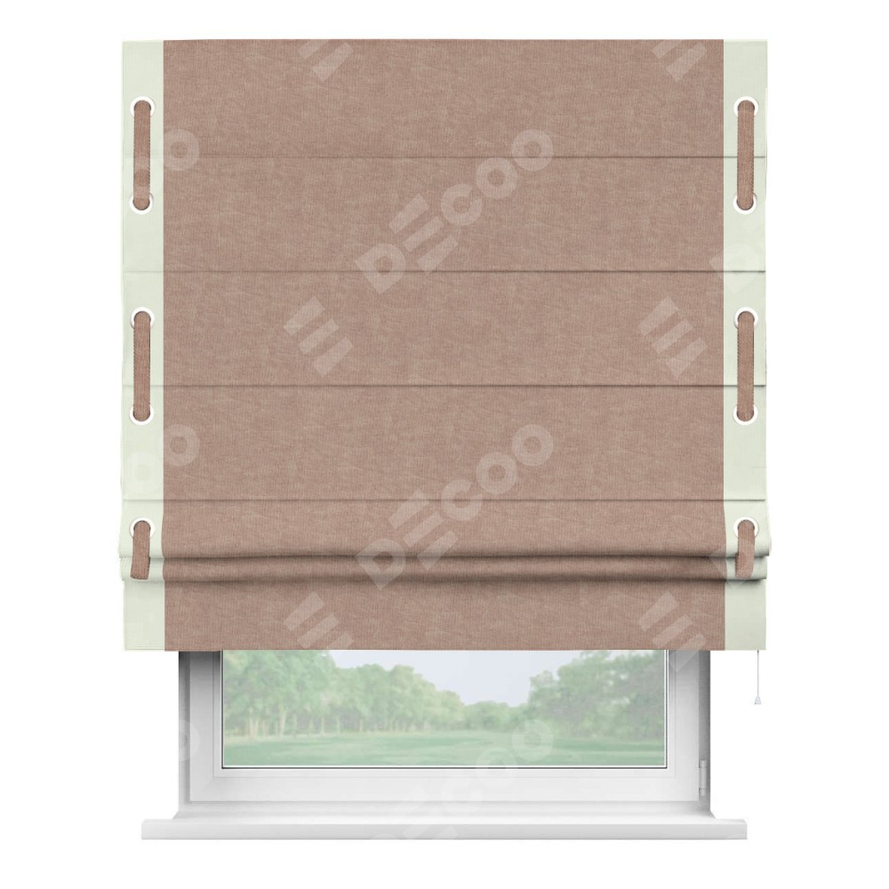 Римская штора «Кортин» для проема, канвас розовая пудра, с кантом Стрим Дуо (люверсы с пояском)