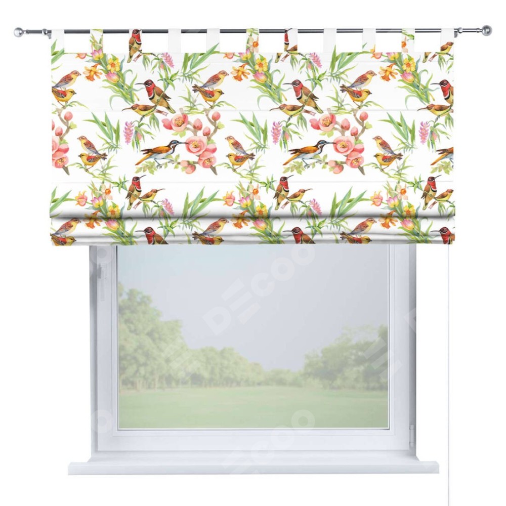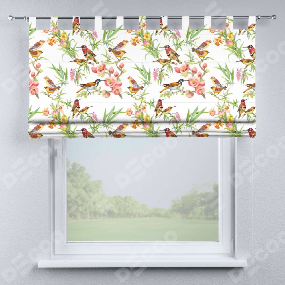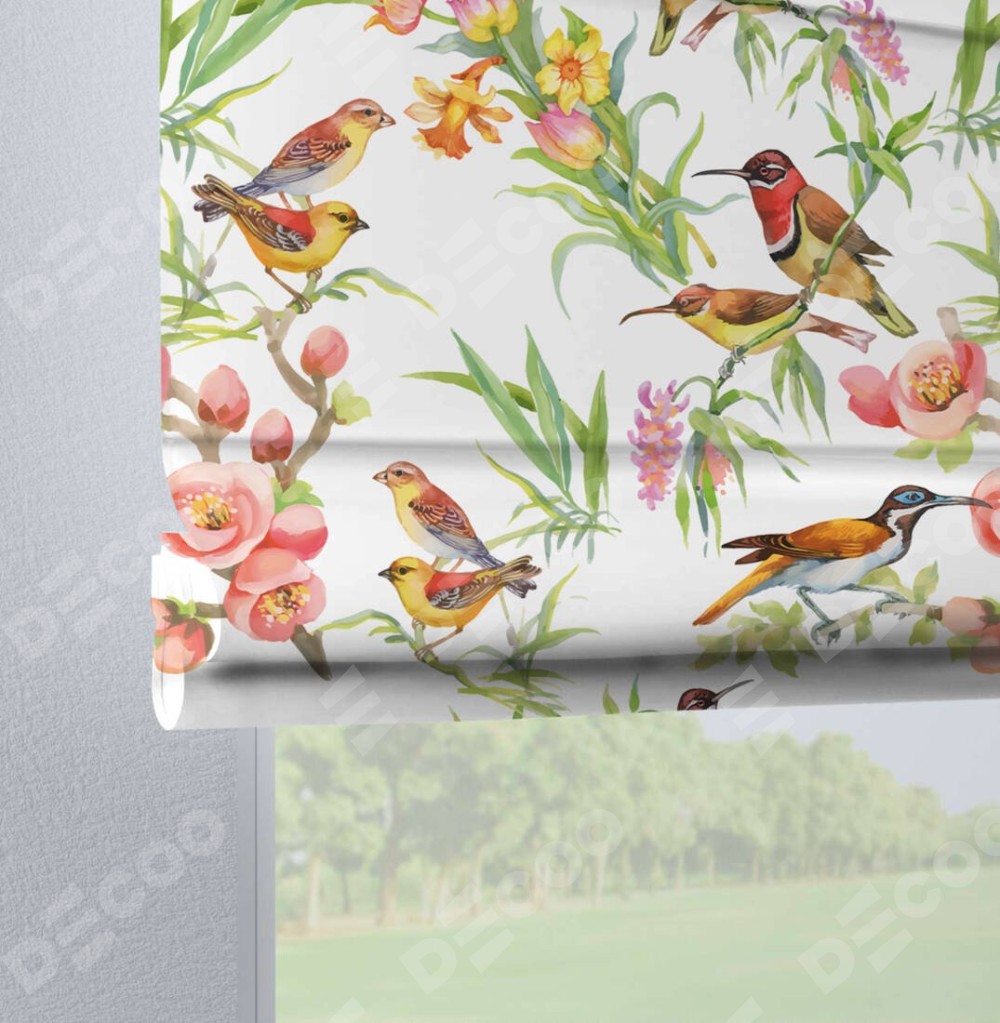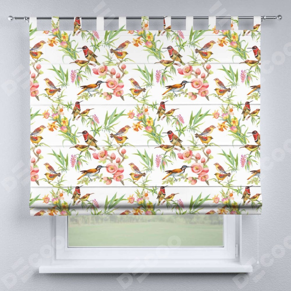 Римская штора производителя «Cortin», используется для проёма, пошита из ткани блэкаут с нанесением сублимационной печати «Певчие птички». Данная модель пошита на петлях, комплектуется на выбор круглым карнизом и подходит для монтажа на стену. Римская штора на петлях имеет простую систему регулировки высоты, отличительным преимуществом данной модели является простой способ монтажа. Достаточно повесить ее на трубу и штора готова!