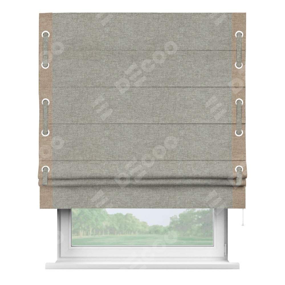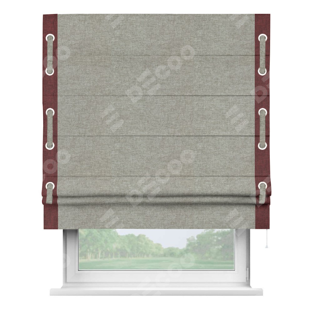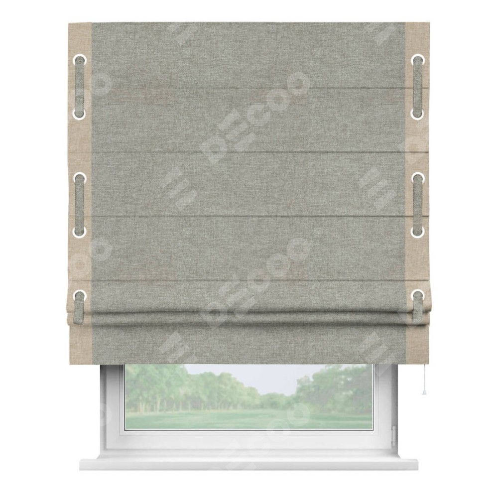 Римская штора «Кортин» с кантом Стрим Дуо (люверсы с пояском), для проема, ткань лён кашемир серый