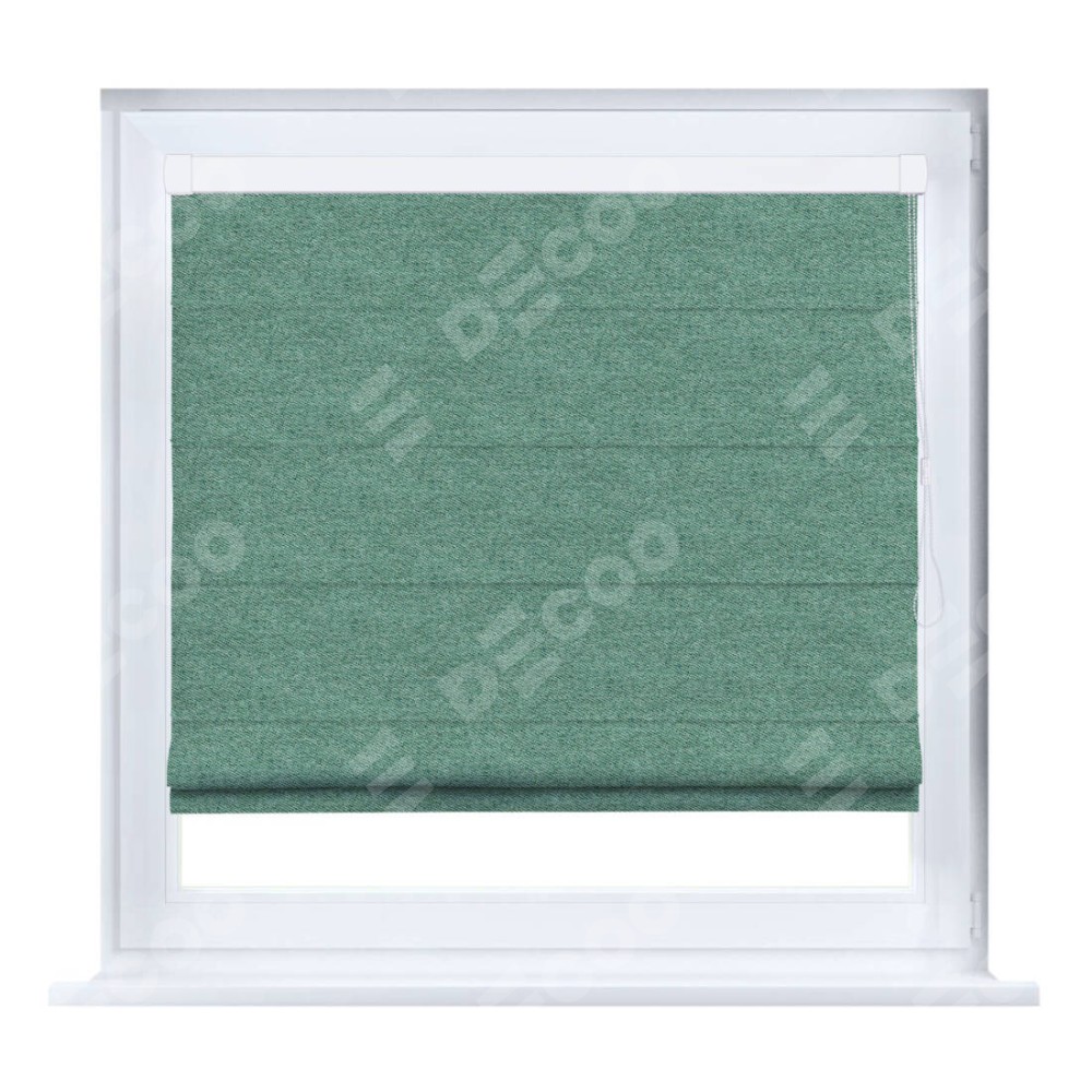 Римская штора производителя «Cortin», устанавливается на створку окна, пошита из ткани твид блэкаут бирюзовый, артикул 90934. Штора шьётся по индивидуальным размерам, для данного типа римской шторы возможная ширина от 35 до 150 см., высота до 250 см.