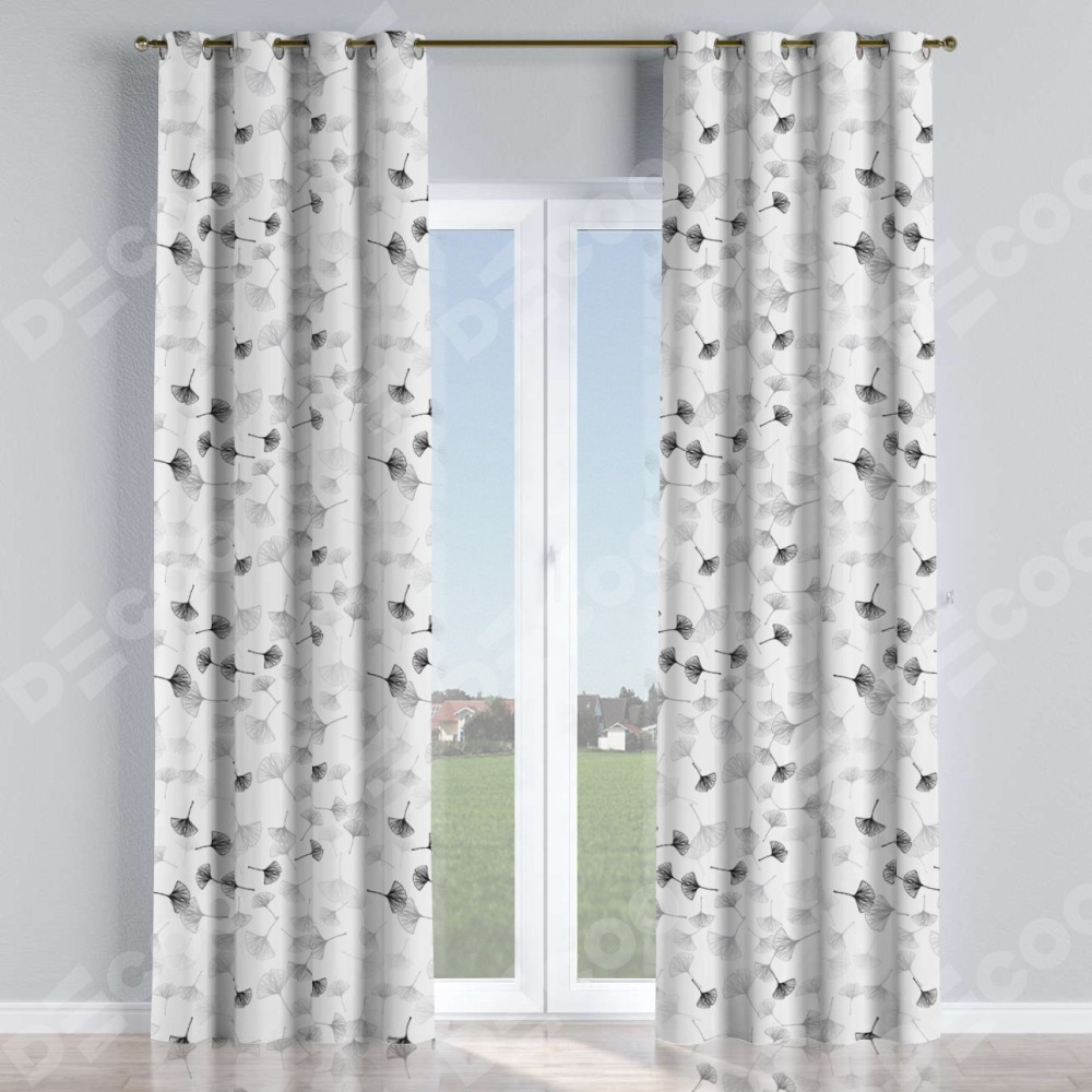Комплект прямых штор, от производителя «Cortin», пошиты из ткани блэкаут с нанесением сублимационной печати «Дымчатые листочки». Данная модель пошита на люверсах, комплектуется на выбор круглым карнизом и подходит для монтажа на стену или потолок. Прямые шторы на люверсах шьются по стандарту с коэффициентом 1/2 (на 100 см. ширины проёма 200 см. ширины ткани), отличительным преимуществом данной модели является простой способ монтажа. Достаточно повесить ее на трубу и штора готова!