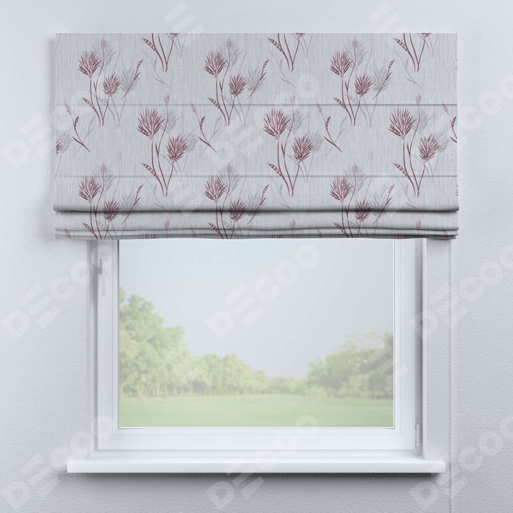 Классическая римская штора производителя «Cortin», пошита из ткани блэкаут с нанесением сублимационной печати «Полевые травы серый». Имеет универсальный механизм и подходит для монтажа: на потолок, на стену и в нишу.