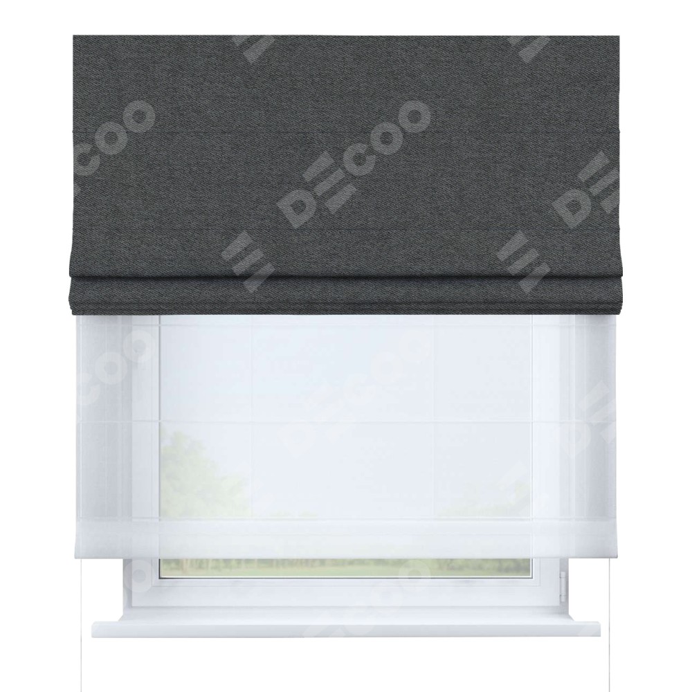Римская штора «Кортин», твид блэкаут тёмно-серый, день-ночь