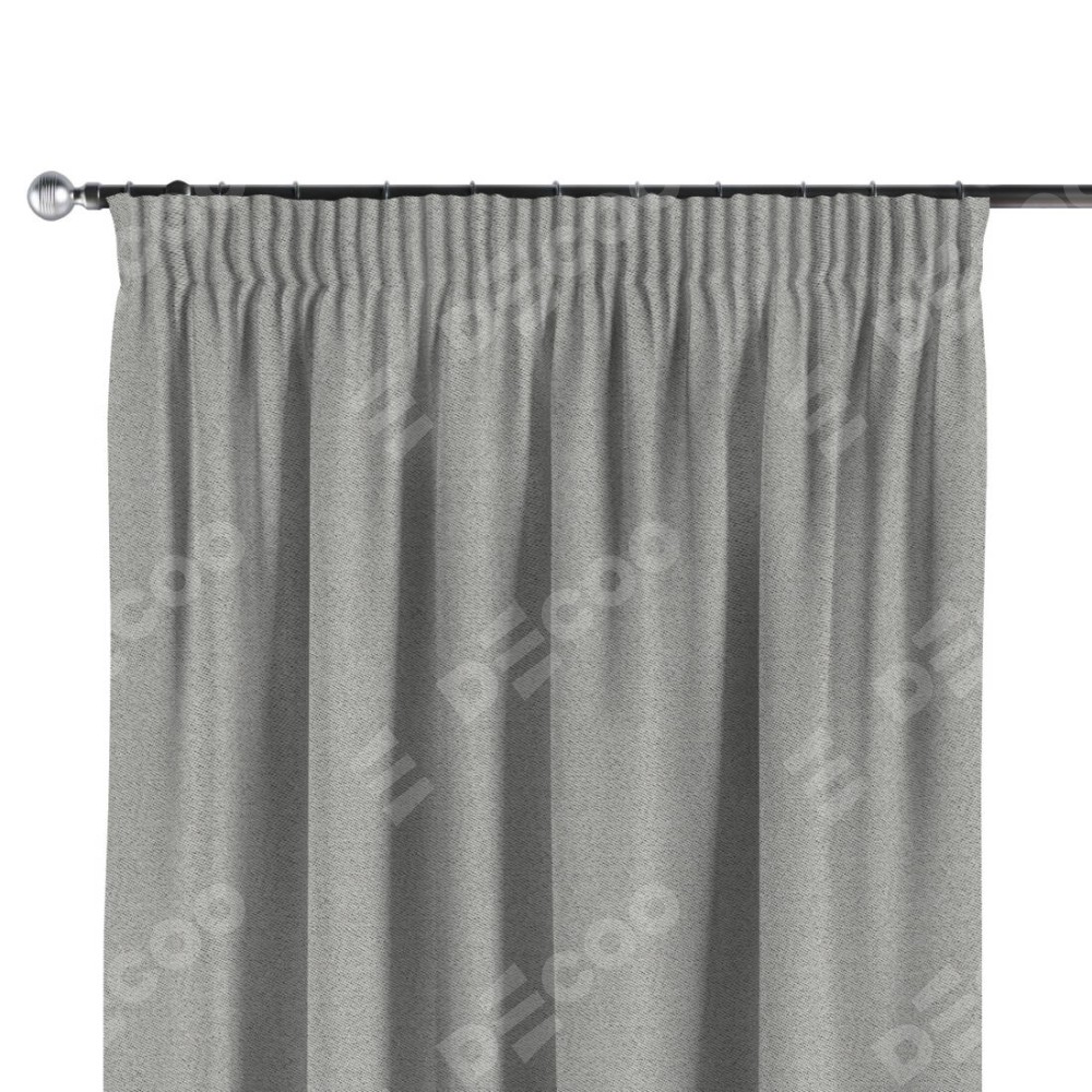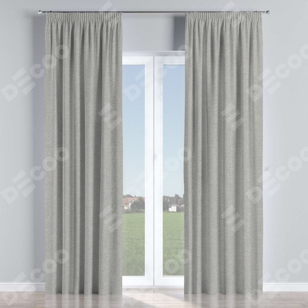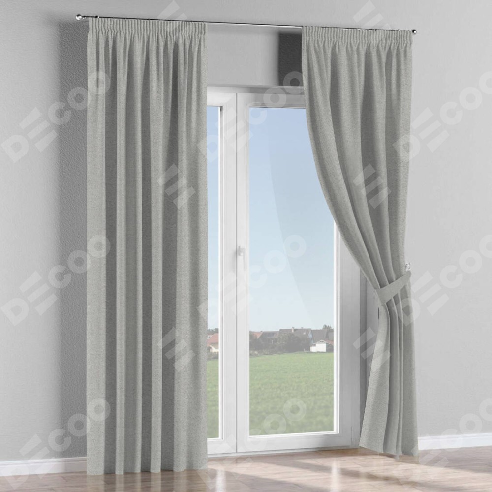 Комплект прямых штор, от производителя «Cortin», пошиты из ткани твид блэкаут светло-серый, артикул ткани 90936. С изнаночной стороны в верхней части штор пристрачивается шторная лента с декоративными складками «Карандаш». Для создания элегантных складок прямые шторы шьются по стандарту с коэффициентом 1:2 (на 100 см. ширины проёма 200 см. ширины ткани).