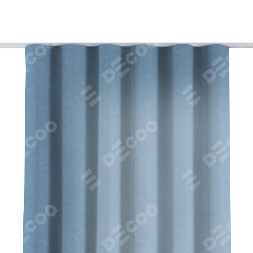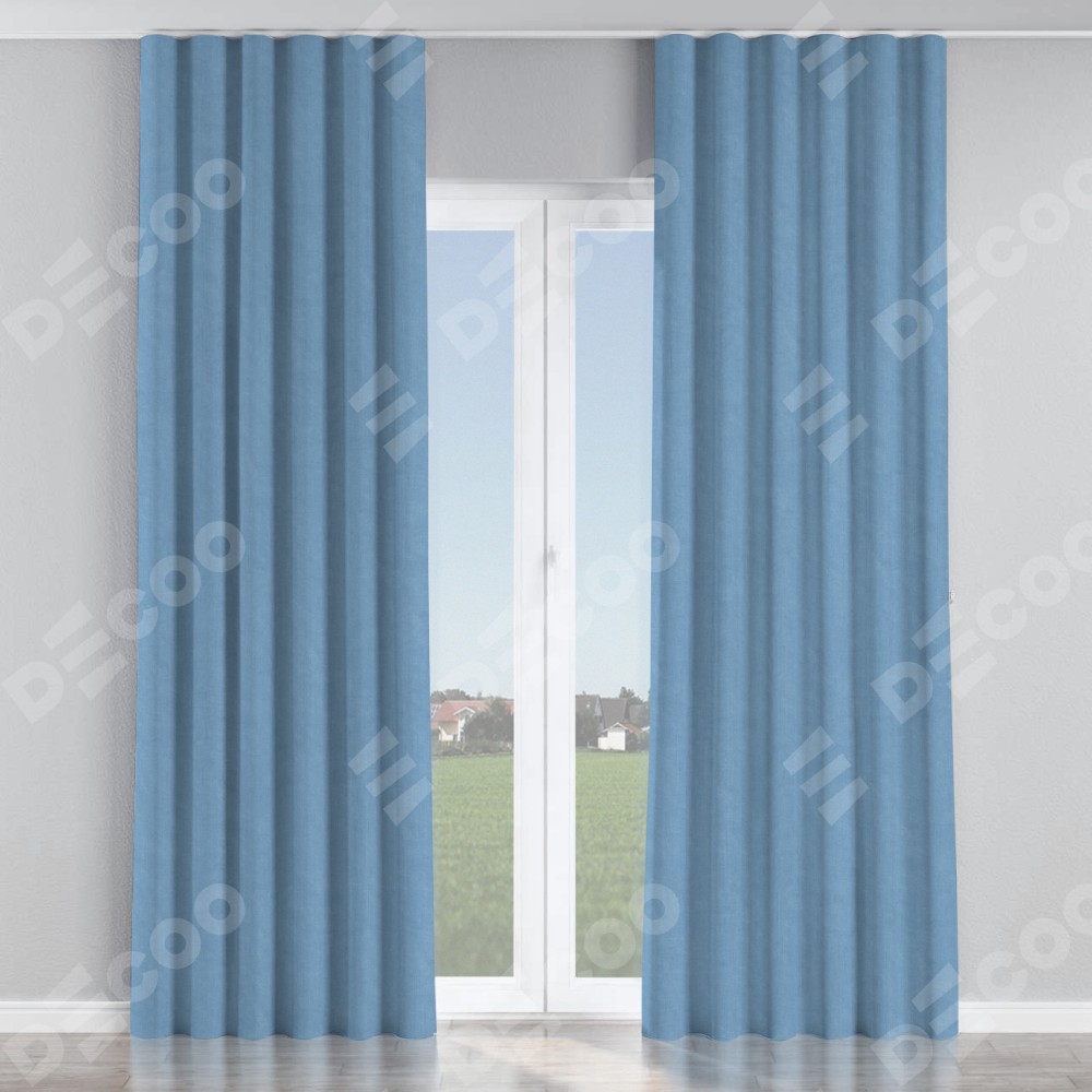 Комплект прямых штор, от производителя «Cortin», пошиты из ткани канвас голубой, артикул ткани 92729. С изнаночной стороны в верхней части штор пристрачивается шторная лента с декоративными складками «Волна». Для создания элегантных складок прямые шторы шьются по стандарту с коэффициентом 1:2 (на 100 см. ширины проёма 200 см. ширины ткани).
