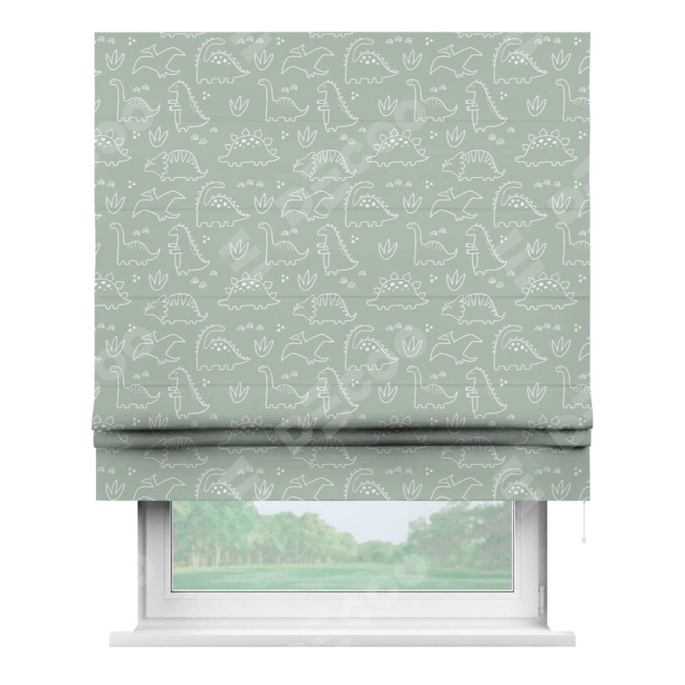 Классическая римская штора производителя «Cortin», пошита из ткани блэкаут с нанесением сублимационной печати «Динопарк». Имеет универсальный механизм и подходит для монтажа: на потолок, на стену и в нишу.