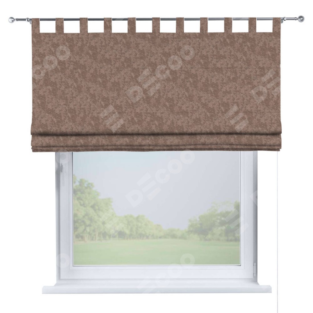 Римская штора производителя «Cortin», используется для проёма, пошита из ткани софт мрамор капучино, артикул ткани 93577. Данная модель пошита на петлях, комплектуется на выбор круглым карнизом и подходит для монтажа на стену. Римская штора на петлях имеет простую систему регулировки высоты, отличительным преимуществом данной модели является простой способ монтажа. Достаточно повесить ее на трубу и штора готова!