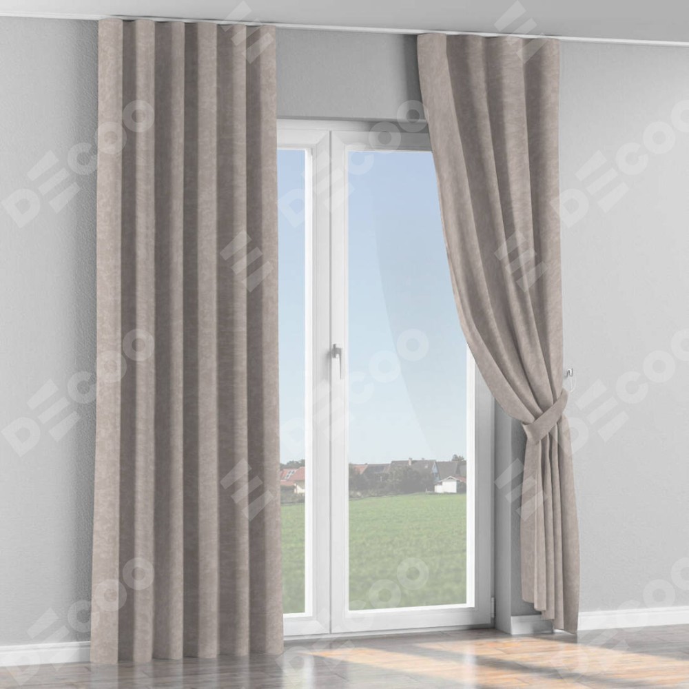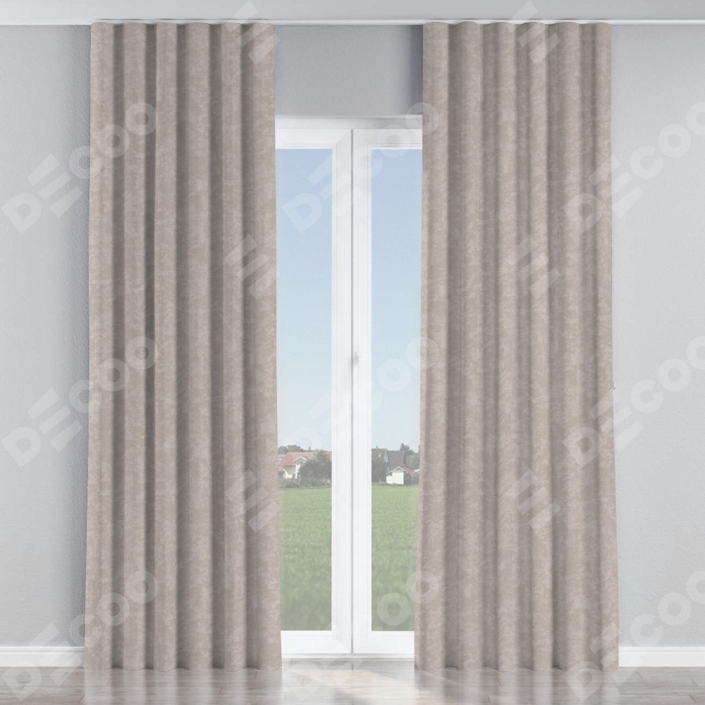 Комплект прямых штор, от производителя «Cortin», пошиты из ткани софт мрамор пудровый, артикул ткани 93578. С изнаночной стороны в верхней части штор пристрачивается шторная лента с декоративными складками «Волна». Для создания элегантных складок прямые шторы шьются по стандарту с коэффициентом 1:2 (на 100 см. ширины проёма 200 см. ширины ткани).