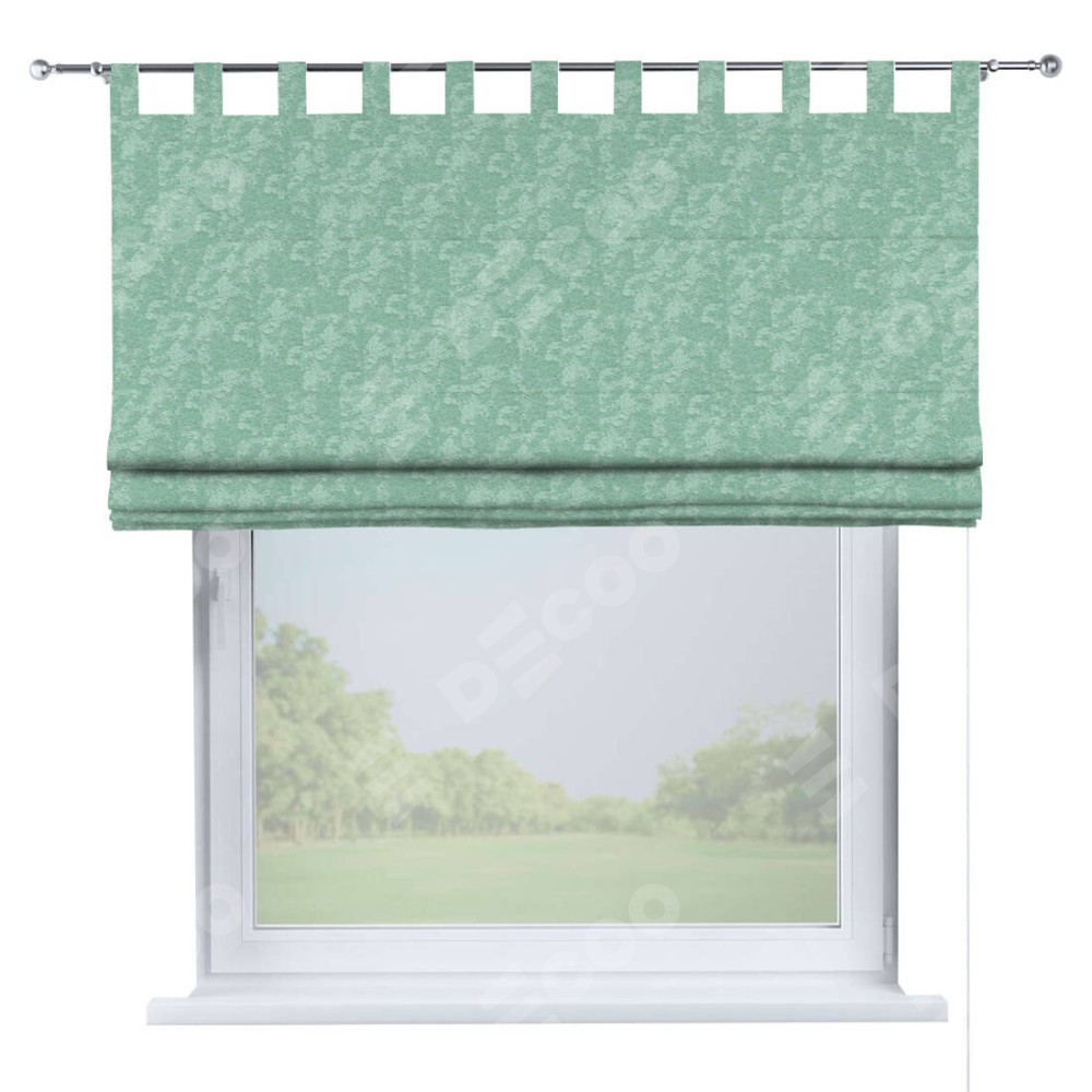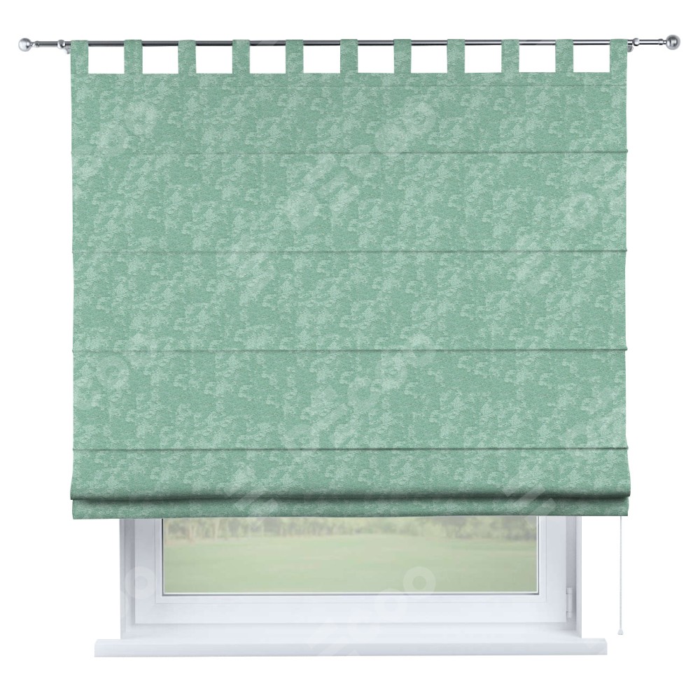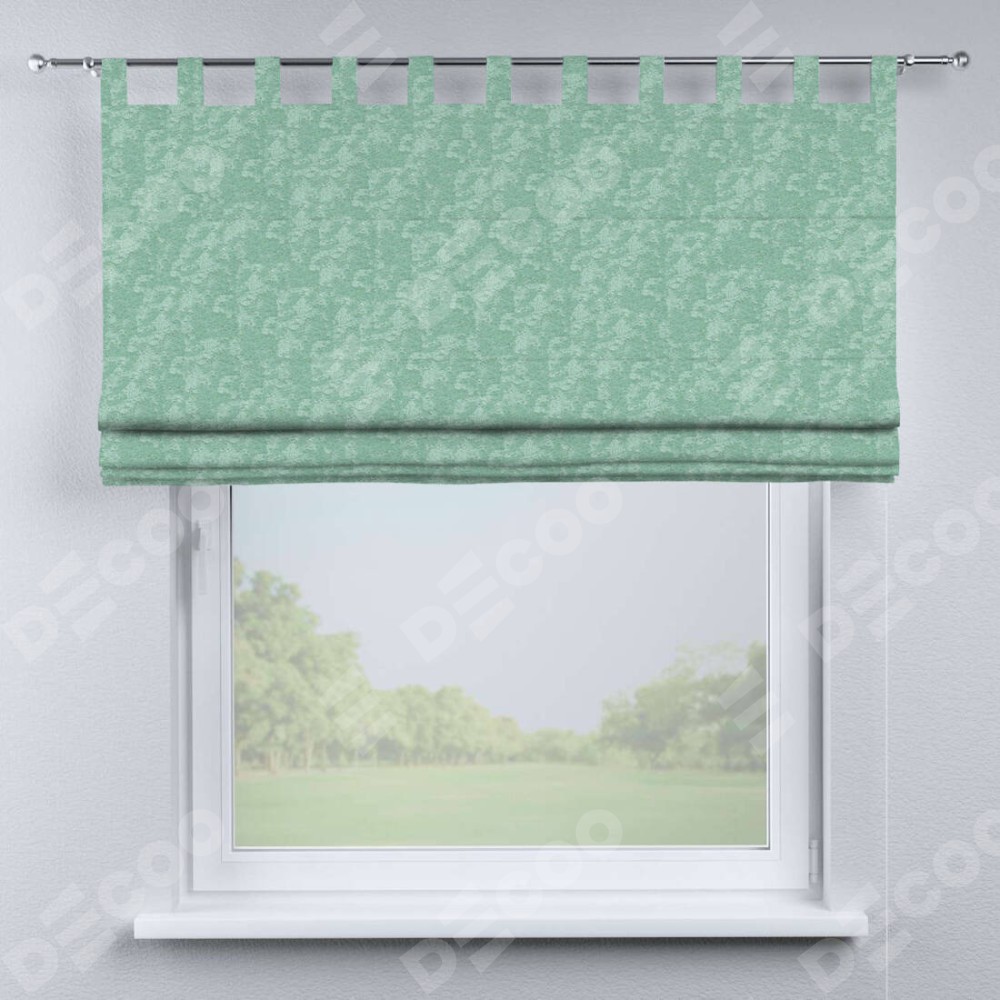 Римская штора производителя «Cortin», используется для проёма, пошита из ткани софт мрамор светло-зелёный, артикул ткани 93579. Данная модель пошита на петлях, комплектуется на выбор круглым карнизом и подходит для монтажа на стену. Римская штора на петлях имеет простую систему регулировки высоты, отличительным преимуществом данной модели является простой способ монтажа. Достаточно повесить ее на трубу и штора готова!