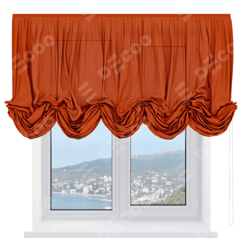 Австрийская штора производителя «Cortin», используется для проёма, пошита из ткани лён терракотовый, артикул ткани 53440. Имеет универсальный механизм и подходит для монтажа: на потолок и на стену.