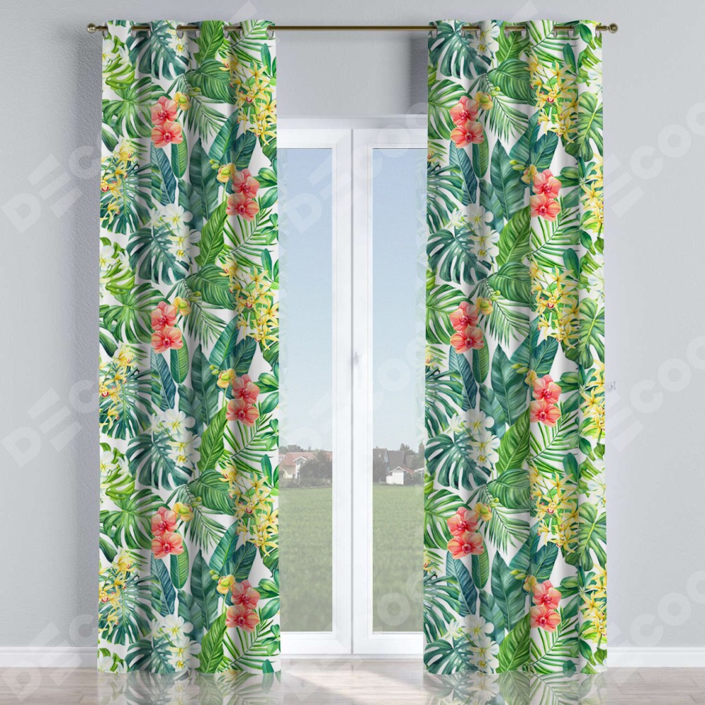 Комплект прямых штор, от производителя «Cortin», пошиты из ткани блэкаут с нанесением сублимационной печати «Орхидеи в тропиках». Данная модель пошита на люверсах, комплектуется на выбор круглым карнизом и подходит для монтажа на стену или потолок. Прямые шторы на люверсах шьются по стандарту с коэффициентом 1/2 (на 100 см. ширины проёма 200 см. ширины ткани), отличительным преимуществом данной модели является простой способ монтажа. Достаточно повесить ее на трубу и штора готова!