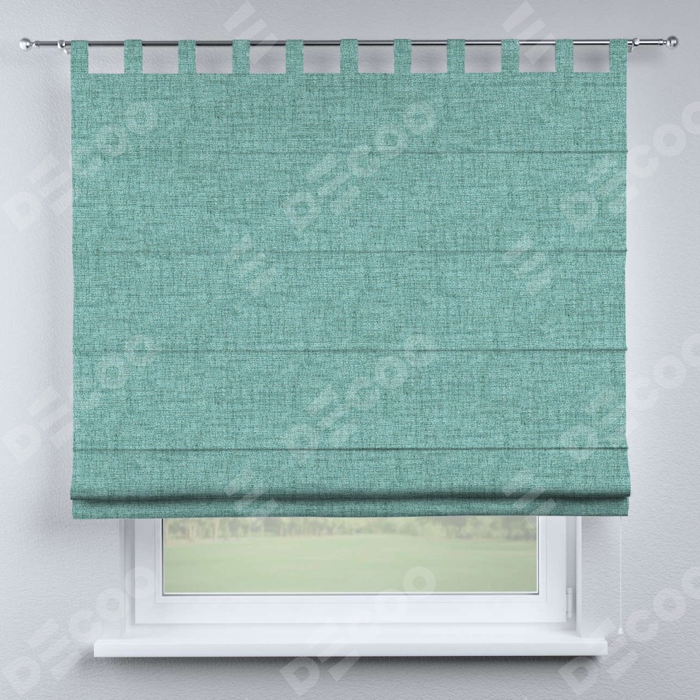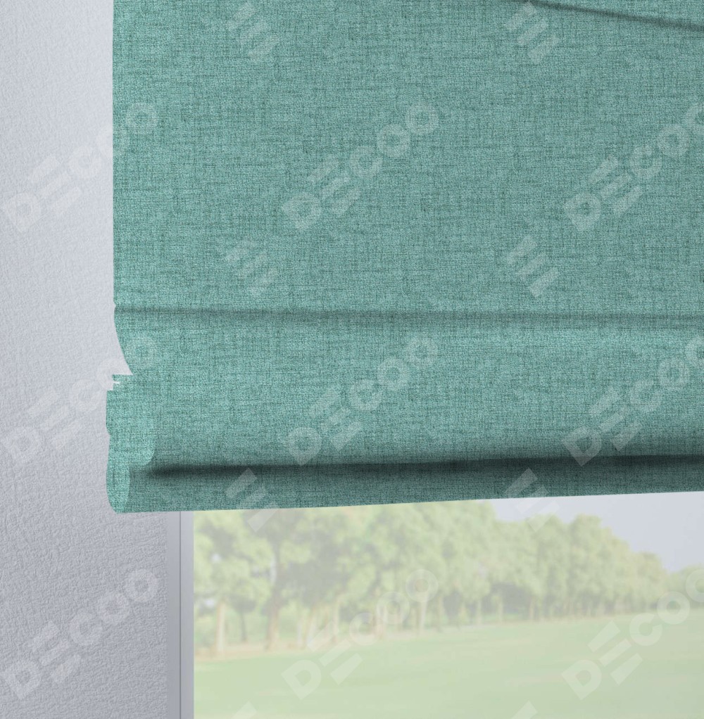 Римская штора «Кортин», рогожка димаут аквамариновый крайола, на петлях